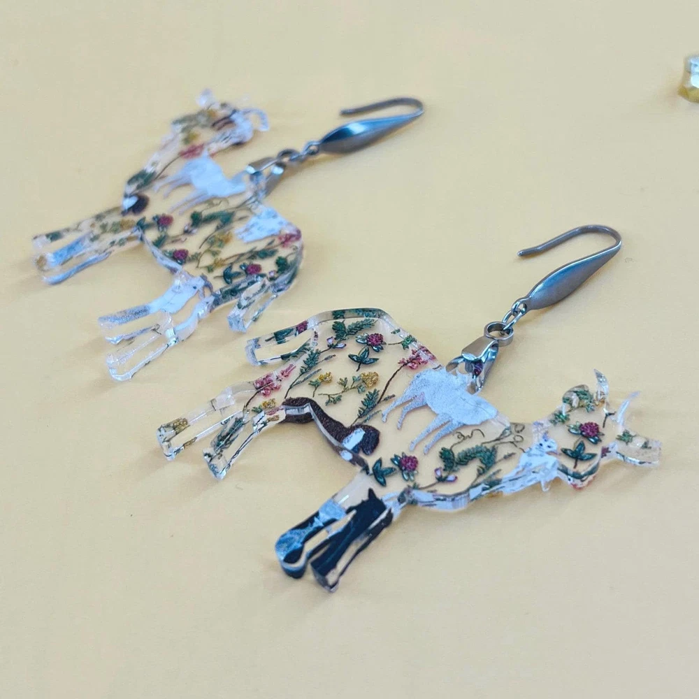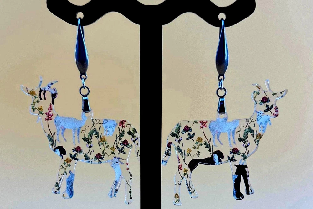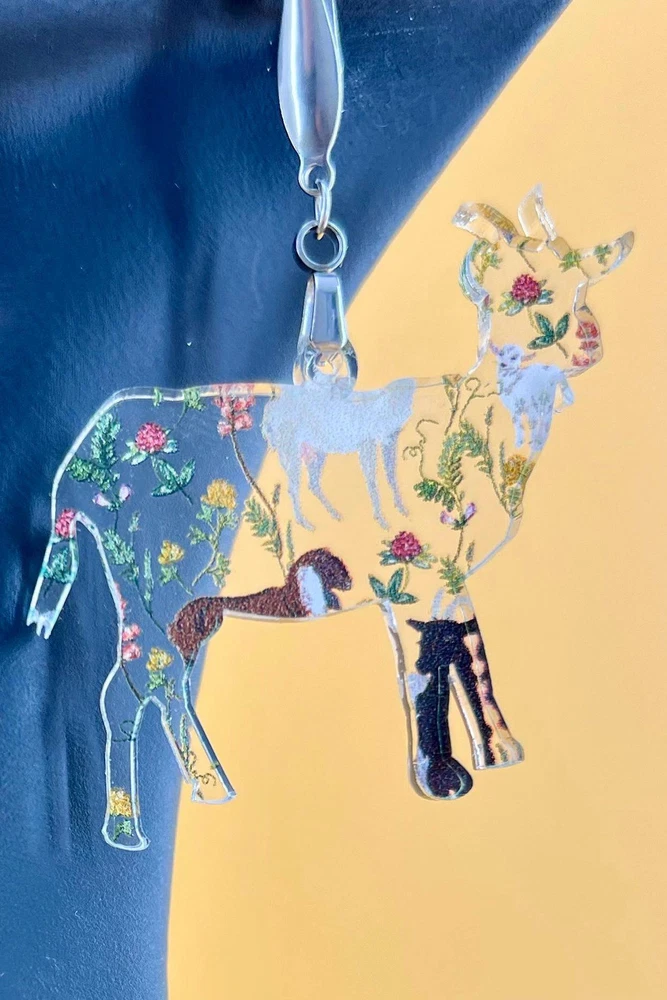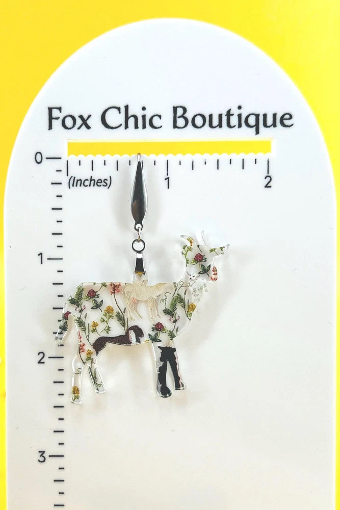 Embrace your love for farm animals with these whimsical goat dangle earrings! Fun and unique, these playful kid earrings are perfect for the goat lover in your life. Whether it's a gift for a farm animal enthusiast or a treat for yourself, these earrings are sure to bring a touch of charm to any outfit. Add a dose of fun to your jewelry collection with these delightful farm earrings. Lightweight Acrylic Earrings on a Stainless Steel hook. Earring hardware is stainless steel and nickel/lead free. 🌟(Please see item details/highlights/pictures for size information)🌟 Each earring is laser cut from acrylic and assembled by hand in our studio. 🌟Due to variation in the patterns and handmade processes, each earring will vary earring to earring. No two earrings will be identical but will look similar to what is pictured! Each pair of earrings comes on an earring card with silicone backers and packaged in an organza bag. Perfect for gift giving! We currently do not offer more gift-wrapping options. Shipping: All purchases are shipped in a box with tracking so that they arrive safely to you! Currently we only ship to US postal addresses. We have a set standard shipping time of 1-3 business days from the time your order is placed. Everything in our shop is already handmade and ready to ship FAST! Please be aware that unexpected delays can occur, which you will be notified at the time of any such occurrence. Jewelry Care: 🌟Each piece is delicate! Avoid dropping or bending! 🌟Do Not expose to excessive moisture, please remove jewelry before showering, swimming, and sleeping. 🌟Avoid abrasives, perfumes, lotions, excessive heat, chemicals etc. These may deteriorate your jewelry and may damage its appearance. 🌟Clean with the soft cloth we have included in your package (and it is FREE of Charge!) No Returns: Due to hygienic and safety reasons, ALL SALES ARE FINAL. We DO NOT accept returns. In the event you have an issue with your purchase, please feel free to message us on Etsy to discuss any possible resolution.