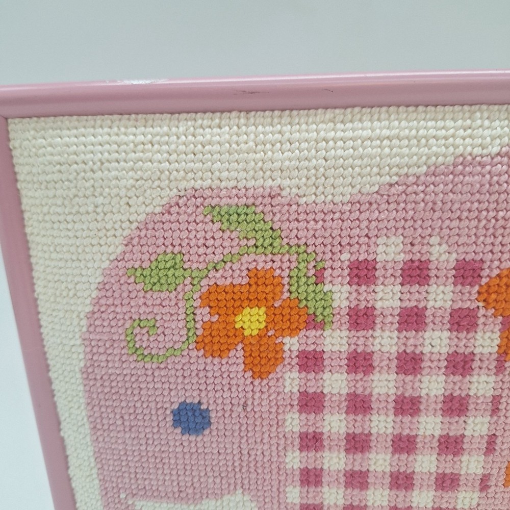 Add a touch of whimsy to your child's room with this framed pink elephant needlepoint art, featuring vibrant orange flowers and charming gingham ears. Perfect for nursery decor. The pink frame is metal. • Whimsical pink elephant design • Orange floral accents • Gingham patterned ears • Framed for easy hanging • Ideal for nursery or child's room decor Size: Unisex Kids 11.5" x 8.5" Condition: Pre-Owned Good No stains or tears Thank you for shopping with Gardenspire. All items are carefully packaged for maximum protection during shipping. We ship on Mondays, Wednesdays and Fridays. We had select all of our items from a variety of sources. While our home is smoke free, we cannot guarantee that these items originated from a smoke free environment. We do our best to inspect each item and to accurately describe any and all blemishes. However, we are human and we sometimes make mistakes. Please do reach out to us if you are unsatisfied with your purchase so we can work with you to make it right. We offer 30 day refunds. Please check out our store for more great items.