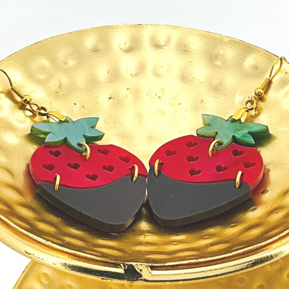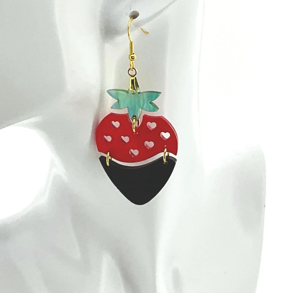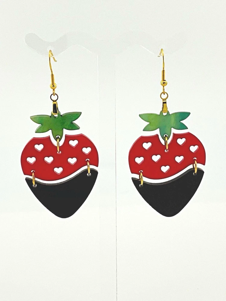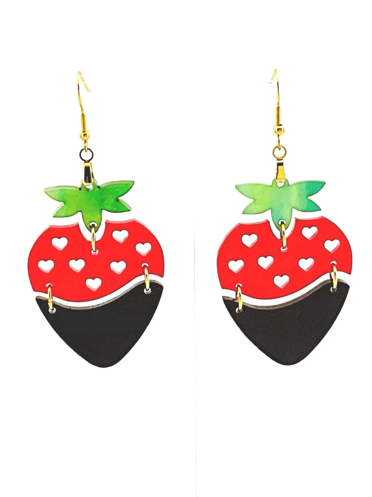 Add a touch of sweetness to your style with these adorable Strawberry Earrings! Handmade with love, these fruit earrings make the perfect gift for Valentine's Day or a special teacher. These whimsical earrings are a fun and unique addition to your jewelry collection. Stand out with these novelty strawberry jewelry pieces! Lightweight Acrylic Earrings on a Stainless Steel hook. Earring hardware is stainless steel, and nickel/lead free. 🌟(Please see item details/highlights for size information)🌟 Each earring is laser cut from acrylic and assembled by hand in our studio. 🌟Due to variation in the patterns and handmade processes, each earring will vary earring to earring. No two earrings will be identical but will look similar to what is pictured! Each pair of earrings comes on an earring card with silicone backers and packaged in an organza bag. Perfect for gift giving! We currently do not offer more gift-wrapping options. Shipping: All purchases are shipped in a box with tracking so that they arrive safely to you! Currently we only ship to US postal addresses. We have a set standard shipping time of 1-3 business days from the time your order is placed. Everything in our shop is already handmade and ready to ship FAST! Please be aware that unexpected delays can occur, which you will be notified at the time of any such occurrence. Jewelry Care: 🌟Each piece is delicate! Avoid dropping or bending! 🌟Do Not expose to excessive moisture, please remove jewelry before showering, swimming, and sleeping. 🌟Avoid abrasives, perfumes, lotions, excessive heat, chemicals etc. These may deteriorate your jewelry and may damage its appearance. 🌟Clean with the soft cloth we have included in your package (and it is FREE of Charge!) No Returns: Due to hygienic and safety reasons, ALL SALES ARE FINAL. We DO NOT accept returns. In the event you have an issue with your purchase, please feel free to message us on Etsy to discuss any possible resolution.