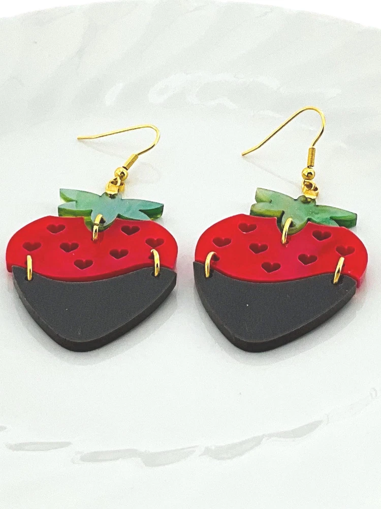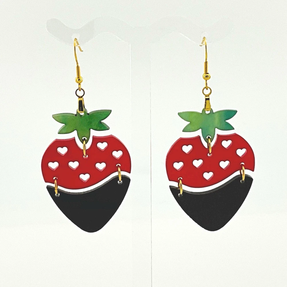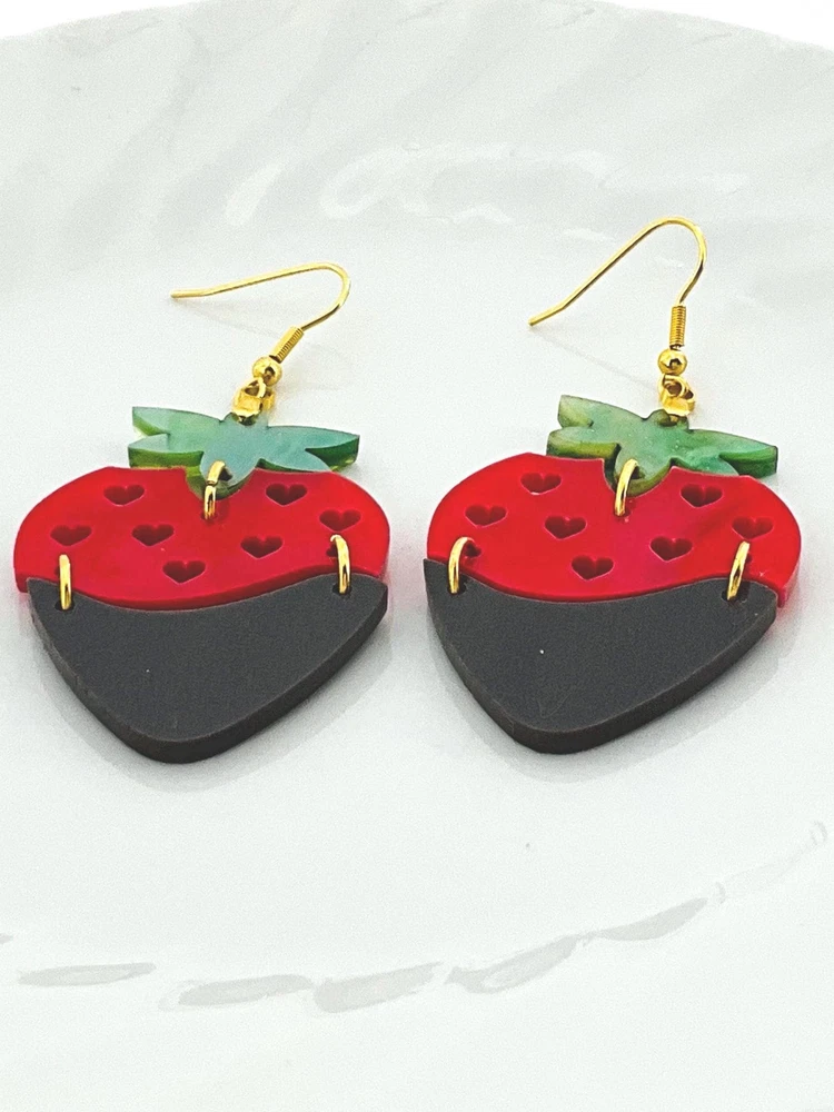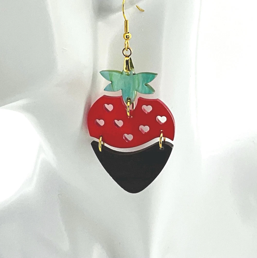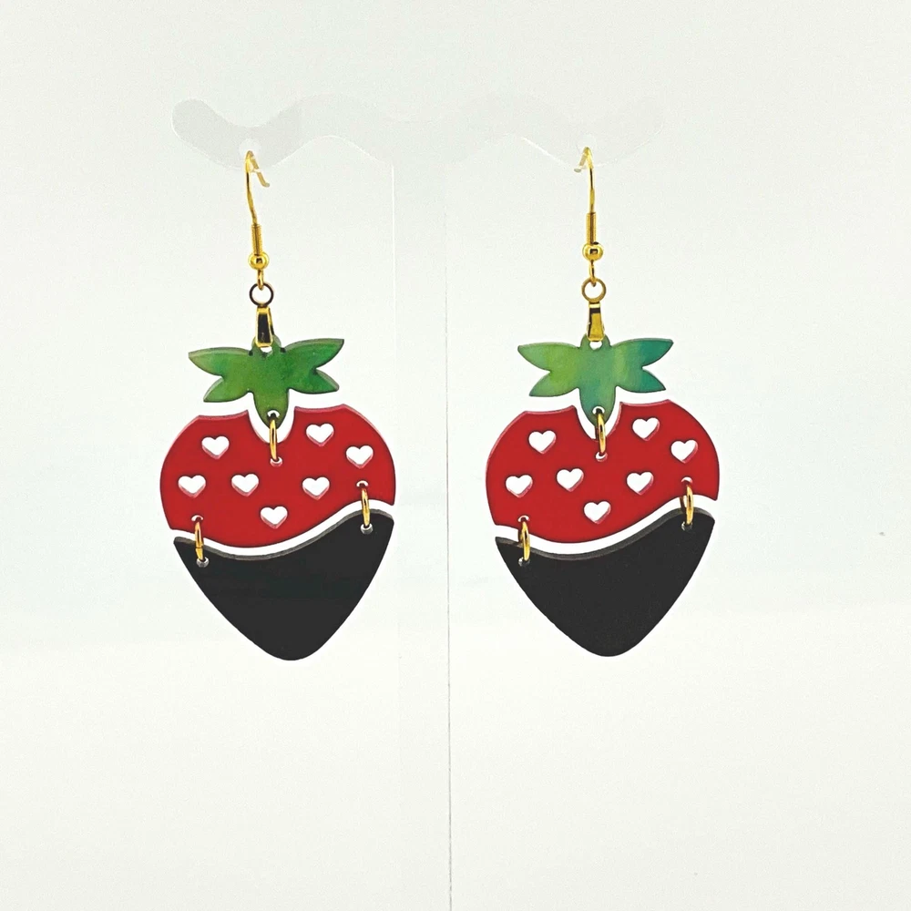 Add a touch of sweetness to your style with these adorable Strawberry Earrings! Handmade with love, these fruit earrings make the perfect gift for Valentine's Day or a special teacher. These whimsical earrings are a fun and unique addition to your jewelry collection. Stand out with these novelty strawberry jewelry pieces! Lightweight Acrylic Earrings on a Stainless Steel hook. Earring hardware is stainless steel, and nickel/lead free. 🌟(Please see item details/highlights for size information)🌟 Each earring is laser cut from acrylic and assembled by hand in our studio. 🌟Due to variation in the patterns and handmade processes, each earring will vary earring to earring. No two earrings will be identical but will look similar to what is pictured! Each pair of earrings comes on an earring card with silicone backers and packaged in an organza bag. Perfect for gift giving! We currently do not offer more gift-wrapping options. Shipping: All purchases are shipped in a box with tracking so that they arrive safely to you! Currently we only ship to US postal addresses. We have a set standard shipping time of 1-3 business days from the time your order is placed. Everything in our shop is already handmade and ready to ship FAST! Please be aware that unexpected delays can occur, which you will be notified at the time of any such occurrence. Jewelry Care: 🌟Each piece is delicate! Avoid dropping or bending! 🌟Do Not expose to excessive moisture, please remove jewelry before showering, swimming, and sleeping. 🌟Avoid abrasives, perfumes, lotions, excessive heat, chemicals etc. These may deteriorate your jewelry and may damage its appearance. 🌟Clean with the soft cloth we have included in your package (and it is FREE of Charge!) No Returns: Due to hygienic and safety reasons, ALL SALES ARE FINAL. We DO NOT accept returns. In the event you have an issue with your purchase, please feel free to message us on Etsy to discuss any possible resolution.