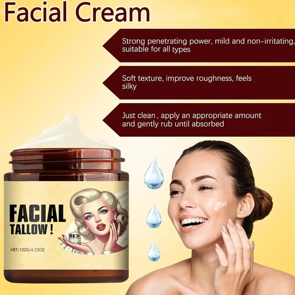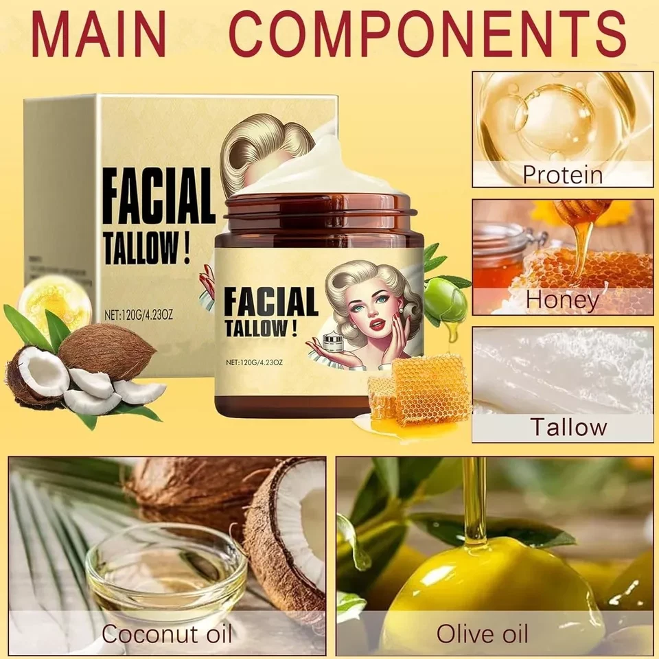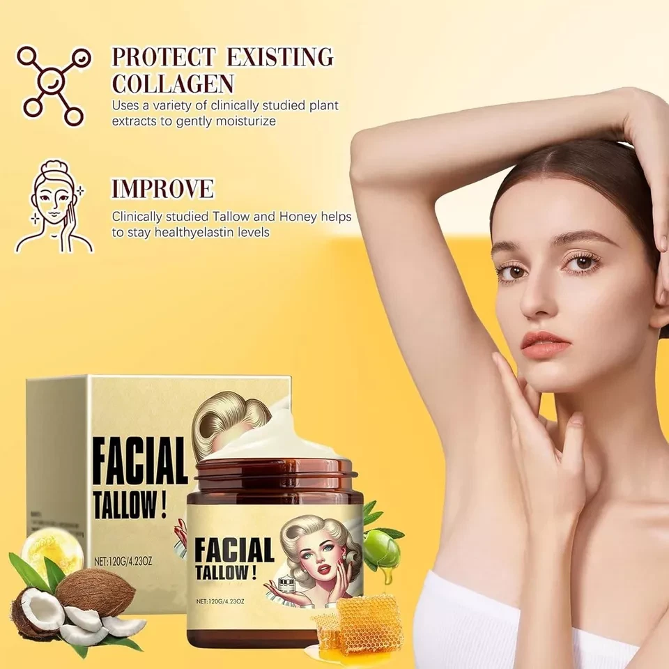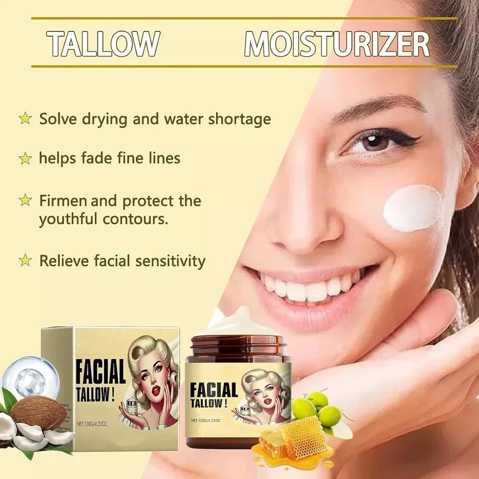Tallow and Honey Cream for moisturizing, Nourishes and hydrates, Facial Cream for All Types (1pcs) 120GM Nourish, improve dry, rough, 0 burden.Suitable for all types, sensitive can also be used with confidence Selected premium tallow without any chemical synthesis additions. Our Moisturizer Rich in essential fatty acids, vitamins, and various nutrients, offering natural care It can penetrate into the bottom layer , replenish water and nutrients for dry and dehydrated cells, repair the damaged barrier, enhance the protection and resistance capabilities Our lotion is rich in vitamins, offering superior nourishment . Providing the necessary moisture and nourishment , leaving it hydrated and radiant Our Balm that also can be used as a face cream, body cream, foot & hand cream Note: This Product is designed to deliver optimal results, offering high-quality performance and satisfaction. Please note that individual experiences and outcomes may vary based on personal use, preferences, and unique circumstances. For best results, we recommend following the provided guidelines and ensuring the product is used as intended. Product result may vary for every individual. NOTE Hello Buyer, Thank you for your interest in our product! Please note that I am a reseller, and your order will be shipped directly from our nearest warehouse to your address. If you have any questions or need assistance, feel free to reach out.