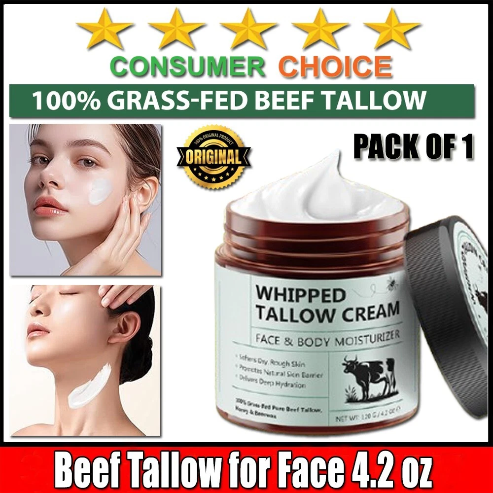 Beef Tallow for Face, Tallow Face Moisturizer, 4.2 oz Organic Whipped Grass Fed Beef Tallow with Honey Cream for Face & Body, Unscented Beef Tallow for Skin - Our 100% Grass-Fed Beef tallow for skin can softens dry and rough skin, promotes the skin barrier, it easily meets your daily moisturizing skincare needs, restoring its vitality. Deeply Moisturizes and Nourishes - Our tallow face moisturizer rich in fatty acids, it deeply moisturizes and nourishes your skin, and enhances your soft. Simple & Safe Formula - Our organic beef tallow for face all ingredients contains only Grass-fed Grass-finished Beef Tallow & Beeswax & Honey, no artificial fragrances & no synthetic additives, so you can use it more safely. Promotes Skin Barrier - Whipped tallow cream helps to soothe and barrier protection skin, relieves skin sensitivity, and repairs the skin to restore it to a normal state. All-In-One Skin Care - You can use tallow balm as a face cream, body, hand, or foot moisturizerto deeply nourish and care for your skin from head to toe. Note: This Product is designed to deliver optimal results, offering high-quality performance and satisfaction. Please note that individual experiences and outcomes may vary based on personal use, preferences, and unique circumstances. For best results, we recommend following the provided guidelines and ensuring the product is used as intended. Product result may vary for every individual. NOTE Hello Buyer, Thank you for your interest in our product! Please note that I am a reseller, and your order will be shipped directly from our nearest warehouse to your address. If you have any questions or need assistance, feel free to reach out.