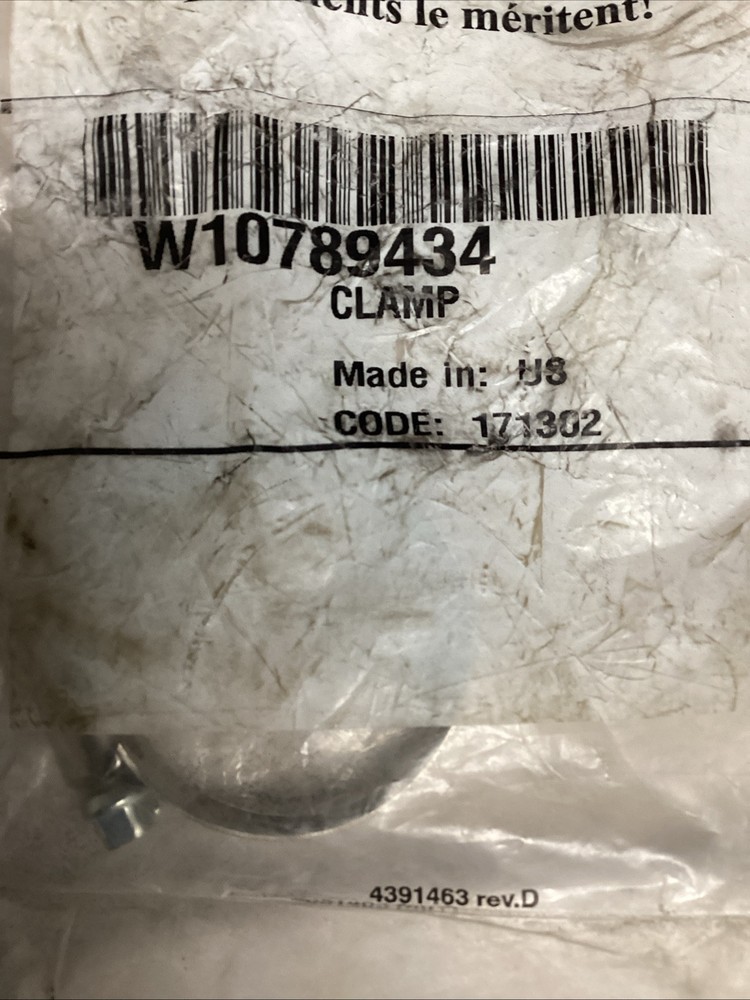 The Whirlpool Hose Clamp, part number W10789434, is a specific replacement part designed for use in Whirlpool dishwashers. This hose clamp is essential for securing hoses in place to prevent leaks and ensure proper functioning of the dishwasher. It is compatible with the Whirlpool W10789434 model, providing a reliable solution for maintaining the efficiency of your appliance. Trusted for its quality and compatibility, this genuine Whirlpool part is a practical choice for ensuring the smooth operation of your dishwasher.
