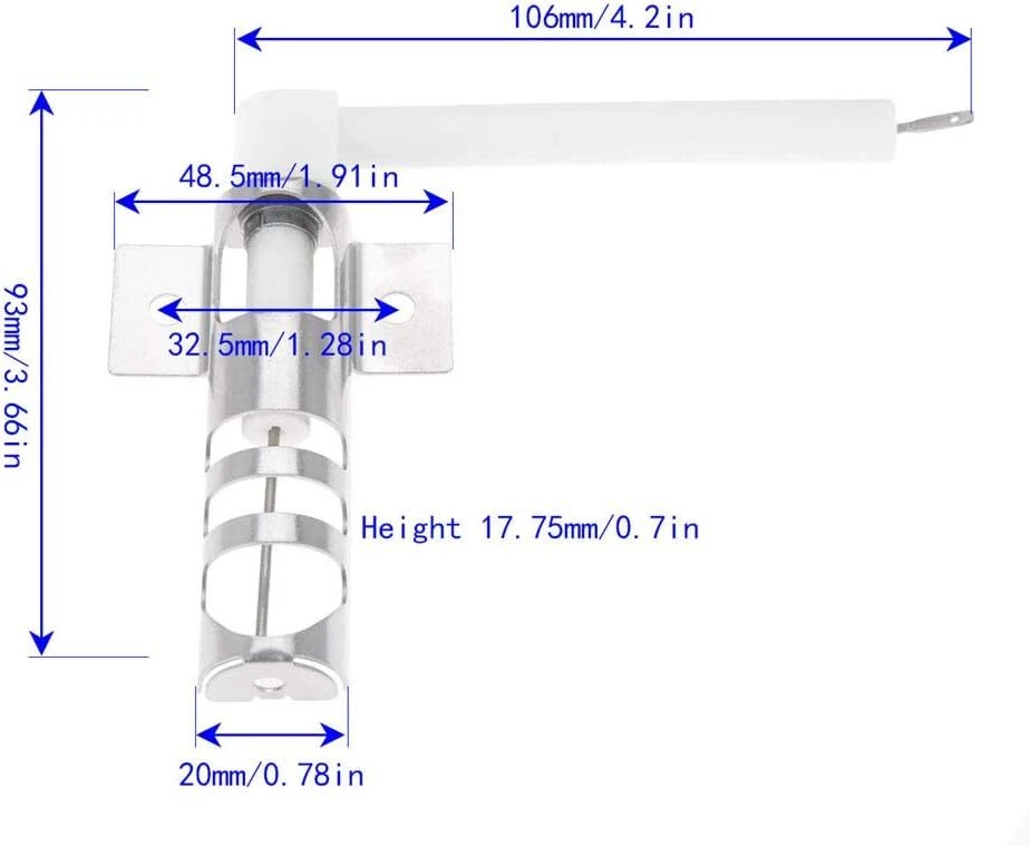 WHIRLPOOL Bake Oven Spark Igniter SF368LEPS0 SF369LEPT1 WFG3161LVB1 WFG3161LVQ0 Product Description About this item Model Number : WP9758079 Oven Ignitor Spark Electrode Replaces Part Numbers : 9758079, AP6013984, and PS11747217.PS11747217, WP9758079. Premium Quality: WP9758079 Oven Spark Igniter, made of ceramic and metal materials, used to ignite oven burners or surface burners, or some gas stove surface models with DSI (Direct Spark Ignition) systems. Easy To Install : Be sure to disconnect the power turn your gas shut-off valve to OFF. Wear work gloves.Locate the location where the ignition is located and use a screwdriver to remove the screw holding the ignition in place. Pull out the igniter. Insert the new igniter into the original position and secure it with the screw, making sure the igniter does not come off and wobble.The installation may require the removal of the access panel on the rear of the stove to disconnect the old ignitor fr Fixes Symptoms : Will Not Start . Little to no heat when baking. Element will not heat. gas igniter glows but won't ignite.