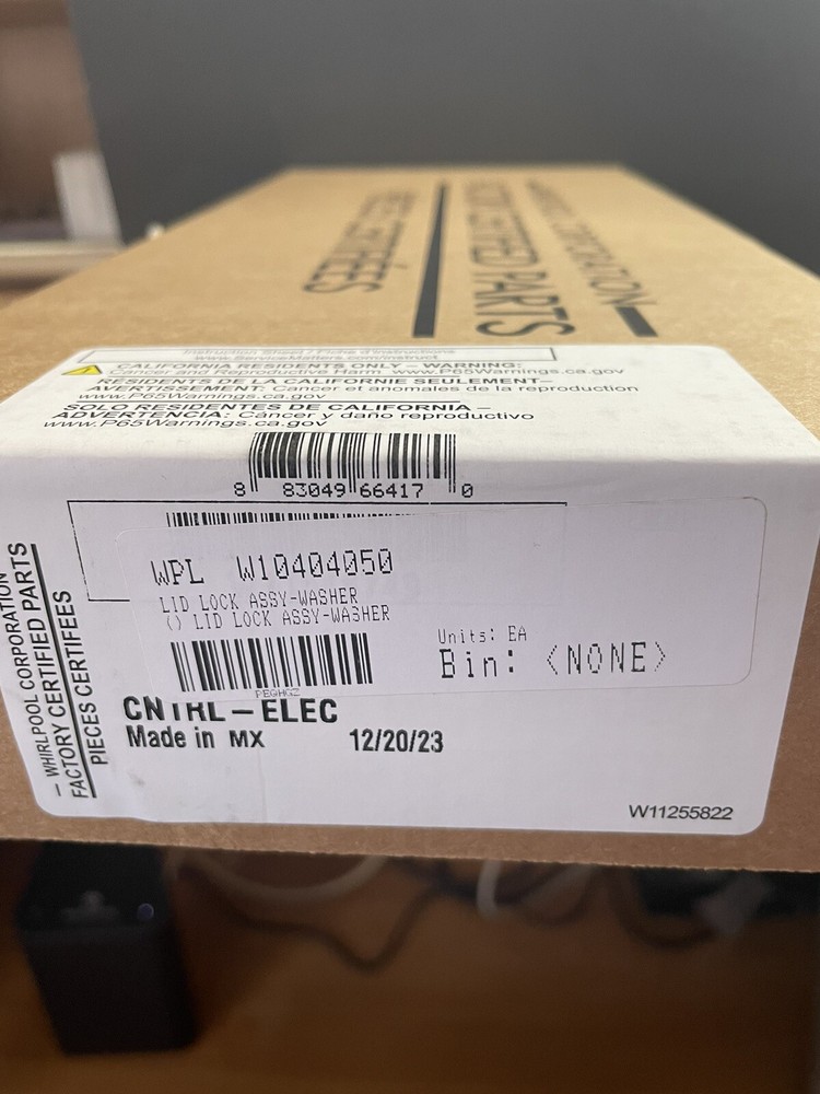 New Genuine OEM Whirlpool Washing Machine Lid Lock W10404050 ~SHIPS FAST! Brand new never installed in original open box. No Returns unless defective. Some new boxes may have been opened for quality control. All orders shipped next business day after payment is received. Always Look up parts diagram from parts supplier to verify this part will fit your model. Just because a part looks the same does not mean it will fit or work for your model. If you are not sure you are ordering the correct part, please send us the model number and we will verify it for you. We will not accept returns if you order the incorrect part number or if you misdiagnose the part needed. Buyer accepts all responsibility for safely installing product and relieves seller from any damages caused by product. Numbers, colors and markings on parts photos in the listing may vary slightly from actual product, as manufacturers modify appearance periodically.