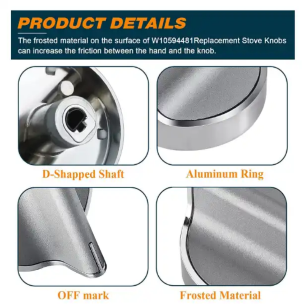 Store Categories Store Categories 5x W10594481 W10698166 Knob for Whirlpool Stove/Range AP5949868 PS11756643 Product Description 5Pcs W10594481 Stove Knobs Replace Stainless Steel for Whirlpool AP6023301 UPGRADE DESIGN: The premium whirlpool gas stove knobs replacement W10594481 designed with stainless steel Stem is reinforced with aluminum ring, The surface of knobs is made of frosted material, which has higher heat resistance than other knobs. PERFECT FIT: Our W10594481 for whirlpool gas stove knobs replacements with a 0.18in "D" axis, 90 Degrees to The Rotating Surface. R eplaces Part: W10594481,3281332 WPW10594481, AP6023301, PS11756643, EAP10594481, B01KR8F5EU, WCG97US0DS00, WCG97US6DS00. ⚠️Not for WCG97US0DS & models starting with WEG7 (Before use, please confirm the direction of your stove and insert the inner core. ) COST-EFFECTIVE GOODS: Package includes 5* W10594481 Control Knobs made of durable metal high-quality stainless steel and 6 inner cores in each direction, 12 in tota l.5 control knobs keep your cooktop looking brand new. BUY WITH CONFIDENC: We’re confident in the design and quality of whirlpool stove knobs replacements, For any reason you're not completely satisfied, you can ask for a replacement or full refund in 1 Year. If you are not sure whether our range knobs correctly fit your appliance, please feel free to contact us or ask a question through eBay. Product Specification: Type Stove Knobs Color Silver Material ABS+Zinc Alloy Qty 5PCS Model Info: W10594481 WPW10594481 AP6023301 Item model number: W10594481 WPW10594481 AP6023301 Part Number: W10594481 WPW10594481 AP6023301 Compatible Brand : Whirlpool Product Dimensions 1.91"L x 1.67"W Specific Uses For Product Lets you control the heat of the surface burner on the cooktop by controlling the size of the flame Special Feature With the specifications of the original knob, while upgrade and reinforced knob material, shaft Item Weight 13.4 Ounces Handle Material Stainless Steel Unit Count 5.0 Count Item Weight 13.4 ounces Voltage 120 Volts Assembled Diameter 1.9 Inches Package Included: 5 x W10594481 Stove Knobs Payment Policy Shipping Policy Returns Policy Payment Policy 1.We accept payment through PayPal and all other Ebay approved forms of payment. 2.Payment must be made within 8 Working days after the auction/bid ends, or eBay will open Unpaid Item case automatically later. 3.When you have any questions about payment, shipping or product, Please send us an ebay message.Thank yo u. Shipping Policy 1.Item located in United States.We will dispatched your item out within 1 business days after received your payment.Usually, it will takes 3-7 working days to delivery your parcel during this period for staff shortage. If any questions about the shipping, please feel free to contact us. 2.Free shipping to the United States via USPS or UPS. Please Note: below address can't ship: Alaska,Guam,Hawaii,Puerto Rico. 3.Tracking number will be provided after the order is shipped. Please leave a Ebay Message to us if you have any questions. Returns Policy if you have any problem, pls contact us any time, we will reply you within 24 hours, thanks for ur visit~ Copyright © 2023 Dianxiaomi