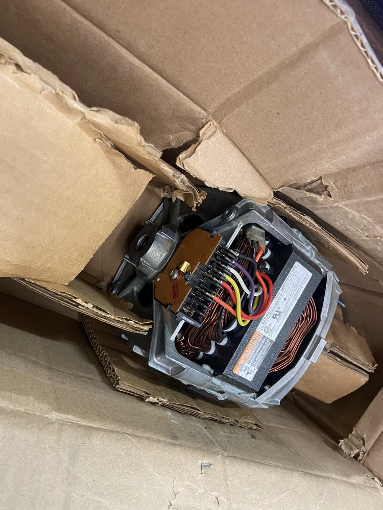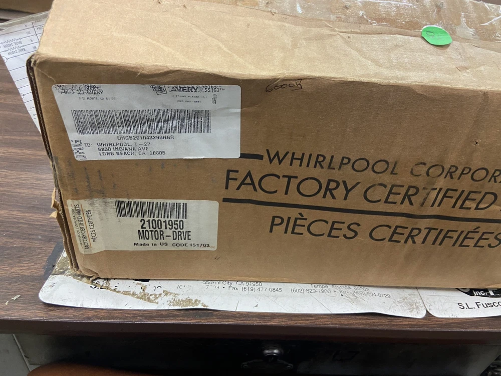 This Whirlpool WP21001950 motor has never been used and is just getting old in its original box. It is compatible with high-efficiency/importer washing machines and is suitable for anyone looking to upgrade their washer. The motor is made by Whirlpool and is designed to be reliable and efficient. The silver color of the motor adds a sleek touch to any laundry room décor. It was manufactured in Mexico and has a model number of Whirlpool WP21001950. This item falls under the categories of Washer & Dryer Parts, Major Appliances Parts & Accessories, Major Appliances, and Home & Garden.