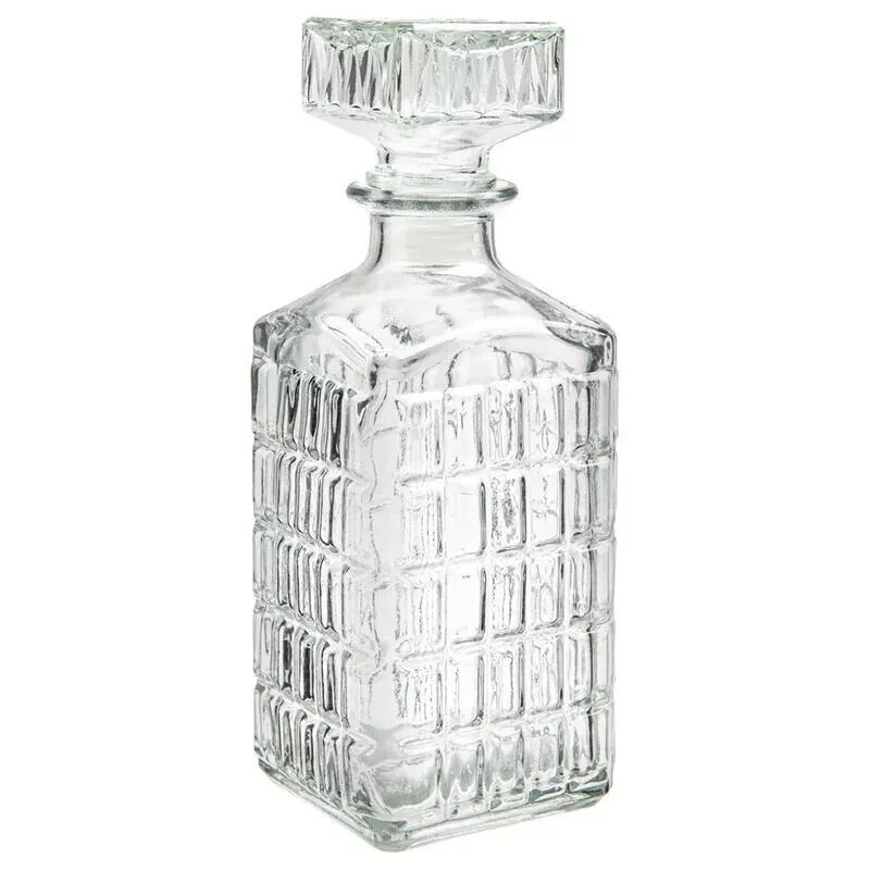 Colour: Clear Material: Glass Pattern: Checked Capacity: 1 L MPN: C33277 Brand: Circleware Theme: Bottle Features: Break/Chip Resistant, Etched, With Lid Type: Decanter Set Includes: Decanter Glassware Type: Whiskey Glass Occasion: All Occasions Department: Adults Style: Art Deco Service For: 2