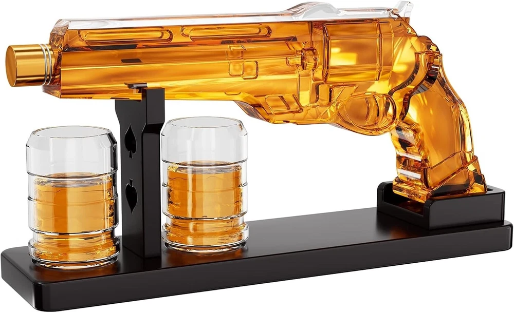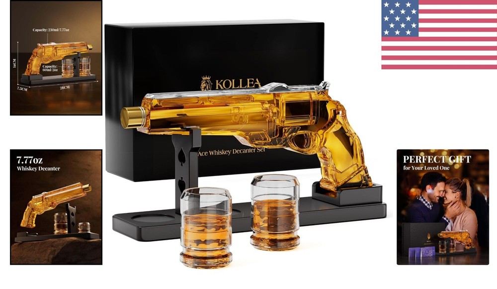 Whiskey Decanter Gift Set for Men - Unique Gun Design - Perfect for Any Occasion ‹ › ‹ › ‹ › ‹ › ‹ › ‹ › ‹ › ‹ › ‹ › ‹ › Whiskey Decanter Gift Set for Men Unique Gun Design - Perfect for Any Occasion Enhance The Flavor Crafted from lead-free glass, this exquisite whiskey decanter is designed to preserve and amplify the flavor of your favorite spirits, including whiskey, rum, bourbon, vodka, and tequila. Experience a smoother sipping journey that encapsulates quality and sophistication, making it an essential investment for every true whiskey aficionado. Extraordinary Gift Choice Searching for a gift that leaves a lasting impression? Look no further! This unique pistol-themed whiskey decanter set not only enhances the taste of spirits but also captivates with its standout design. Beautifully packaged in an elegant gift box, it’s the perfect present for a father, husband, brother, or even a respected boss, making every occasion special. Exquisite Design Featuring a striking gun-shaped decanter paired with a handcrafted wooden display stand, this set adds harmony and visual appeal to any shelf or bar. The intricately designed decanter becomes more than just a vessel; it's a statement piece, bringing a touch of elegance to your sipping rituals. Hand-Made Durable Glass Each liquor gun decanter is lovingly blown by skilled artisans, resulting in a stunning display of clarity and durability. With an emphasis on health, our 100% lead-free glass design ensures that your favorite spirits are safely stored and beautifully presented. Perfect Capacity This stylish revolver whiskey decanter gift set includes two 2oz (60ml) cylinder-shaped glasses and a striking decanter boasting a 7.77oz (230ml) capacity. Whether you're entertaining guests or indulging in a quiet moment, this set delivers unmatched style and functionality. The Classy Spirit Decanter for Every Whiskey Lover Embrace elegance and character with this charismatic whiskey decanter gift set, an ideal addition for connoisseurs and collectors alike. Elevate your drinking experience today. Shipping Free & Fast Shipping - We offer free shipping to most of the USA with a normal delivery time of 3-7 days. However, due to the current situation, additional delivery time (up to 3 weeks) may be required for some items. Alternative Carriers - We may use alternative carriers (e.g. USPS, FedEx, UPS, etc.) to ensure your package arrives safely and on time. Due to the use of multiple carriers, we are unable to provide a tracking number automatically. Handling Time - Orders are processed and shipped within 1-2 business days of receiving cleared payment. Shipping Restrictions - Shipping to Alaska, Hawaii, Puerto Rico, Guam, and other US territories may incur shipping charges or delivery restrictions. Please contact us before ordering, or your order can be refunded/cancelled. State Restrictions - There may be restrictions based on your state of purchase. For example, certain items may not be shipped to California due to state regulations. Contact for Tracking Updates - If you require tracking updates or have any concerns about the delivery of your order, please feel free to contact us, and we will be happy to assist you. Return 30-Day Hassle-Free Returns - We want you to be completely satisfied with your purchase. If you are not, you can return the item within 30 days of receiving it for a full refund or exchange. Easy Return Process - To start a return, simply contact us and we will provide you with a prepaid return shipping label and detailed instructions. Restocking Fee - There are no restocking fees for returns. However, the buyer is responsible for return shipping costs if the return is not due to a seller's error. Refund Processing Time - Refunds will be processed within 5 business days of receiving the returned item in its condition. Payment We accept all major credit cards, PayPal, and Apple Pay for your convenience. Your payment information is secure and encrypted to ensure a safe and seamless transaction. Please complete your payment within 3 days of purchase to avoid any delays in shipping. Feedback Your feedback is extremely important to us. We strive to provide the best products and customer service possible. If you are satisfied with your purchase, please take a moment to leave us a positive review. If you have any concerns or issues with your order, please contact us before leaving negative feedback. We are committed to resolving any problems and ensuring your satisfaction. Contact Us If you have any questions or concerns, please feel free to out to our customer support team. You can contact us through the eBay messaging system. We are available Monday to Friday, 9:00 am to 5:00 pm EST, and we will do our best to respond to your inquiry within 24 hours. Buy it now and enjoy a pleasant shopping experience! Unit Quantity: 1 Set Includes: Decanter,1 x 7.8oz whiskey decanter,1 x spade shaped wooden display stand,1 x exquisite gift box Material: Glass,Wood Features: With Lid/Stopper,Unique Birthday Gifts for Men Dad,Whiskey Decanter Set for Men,For Whiskey,For Liquor,For Tequila,For Bourbon,For Vodka Type: Decanter Set Color: Clear Number of Items in Set: 4 Capacity: 230 ml Style: Military Item Depth: 2.95 in Item Height: 5.51 Inches Item Weight: 1 lb Unit Type: lb