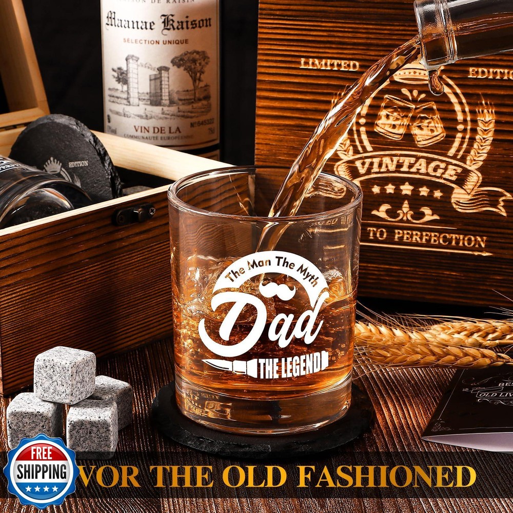 Fathers Day Whiskey Glasses 12 oz, veecom Rock Glasses Gifts for Dad Birthday, Cool Gag Gifts for Dads Who Wants Nothing, Unique Daddy Gift Ideas from Daughter, Kids Features 【 Cool Dad Gift Ideas 】All that whiskey lover needs in the wood box for dad: 12oz whiskey glass, slate coaster, 4pcs natural granite stones, ice tongs and gift card. More than just a whiskey glass set, it's the perfect dad gifts on fathers day, dad birthday, thanksgiving day, christmas,etc. Crafted wooden box engraved with vintage pattern resonate with his journey into fatherhood, surprised them with the cool gag gifts for dad who has everything 【 Wooden Gift Box 】 Whiskey gifts packaged well by foam padded inside, wood box will make your gift out of the ordinary on fathers day, dad birthday, baby shower party, christmas,etc. When your dad open this gift box and sees this whiskey glass set with "best dad", just picture how affected and delighted they will be. 【 12oz Whiskey Glass 】Old Fashioned style with heavy base, clear and smooth glass with non-faded vintage pattern, all is cater to the refined taste of whiskey connoisseurs. Each whisky has its own distinctive flavor, tasting slowly its flavor is just like to aftertaste those surprises and memories in life, "BEST DAD" whisky glasses adds a special meaning to every sip. 【 Premium Whiskey Set 】The Dad Gifts include natural slate, no-slip based coaster engraved with unique pattern adds to the special sense of ritual; Odorless granite whiskey stones ensure an original whiskey without dilution; Stainless steel ice tongs, silicone cover make it easier to put the whiskey stones in the glass; With the card show your sincerest wishes for dad to his important role in the family. 【Best Dad Ever Gifts】 made of wood texture can be treasured and preserved for a long time, it will be a good decorative ornament at home, visually looks retro and elegant. Dad is always the important role of the family. it's a heartfelt gift for your dad, daddy, father, stepfather, father-in-law. Birthday gifts for dad who wants nothing, new dad gifts, father birthday gift, cool gifts for dad, dads birthday gifts ideas. Shipping Free & Fast Shipping: We offer free shipping to most of the USA with a normal delivery time of 3-7 days. However, due to the current situation, additional delivery time (up to 3 weeks) may be required for some items. Alternative Carriers: We may use alternative carriers (e.g., USPS, FedEx, UPS) to ensure your package arrives safely and on time. Due to the use of multiple carriers, we are unable to provide a tracking number automatically. Handling Time: Orders are processed and shipped within 1-2 business days of receiving cleared payment. Shipping Restrictions: Shipping to Alaska, Hawaii, Puerto Rico, Guam, and other US territories may incur shipping charges or delivery restrictions. Please contact us before ordering, or your order can be refunded/cancelled. State Restrictions: Certain items may not be shipped to California due to state regulations. Contact for Tracking Updates: If you require tracking updates or have any concerns about the delivery of your order, please feel free to contact us, and we will be happy to assist you. Return Policy 30-Day Hassle-Free Returns: If you are not completely satisfied with your purchase, you can return the item for free within 30 days of receiving it for a full refund or exchange. Easy Return Process: Contact us, and we will provide you with a prepaid return shipping label and detailed instructions. No Restocking Fee: There are no restocking fees for returns. However, the buyer is responsible for return shipping costs if the return is not due to a seller"s error. Refund Processing: Refunds will be processed within 1 business day of receiving the returned item in its original condition. Feedback Your feedback is extremely important to us. We strive to provide the best products and customer service possible. If you are satisfied with your purchase, please take a moment to leave us a positive review. If you have any concerns or issues with your order, please contact us before leaving negative feedback. We are committed to resolving any problems and ensuring your satisfaction. Contact Us If you have any questions or concerns, please feel free to reach out to our customer support team. You can contact us through the eBay messaging system. We are available Monday to Friday, 9:00 am to 5:00 pm EST, and we will do our best to respond to your inquiry within 24 hours. Thank you for supporting our small family business!