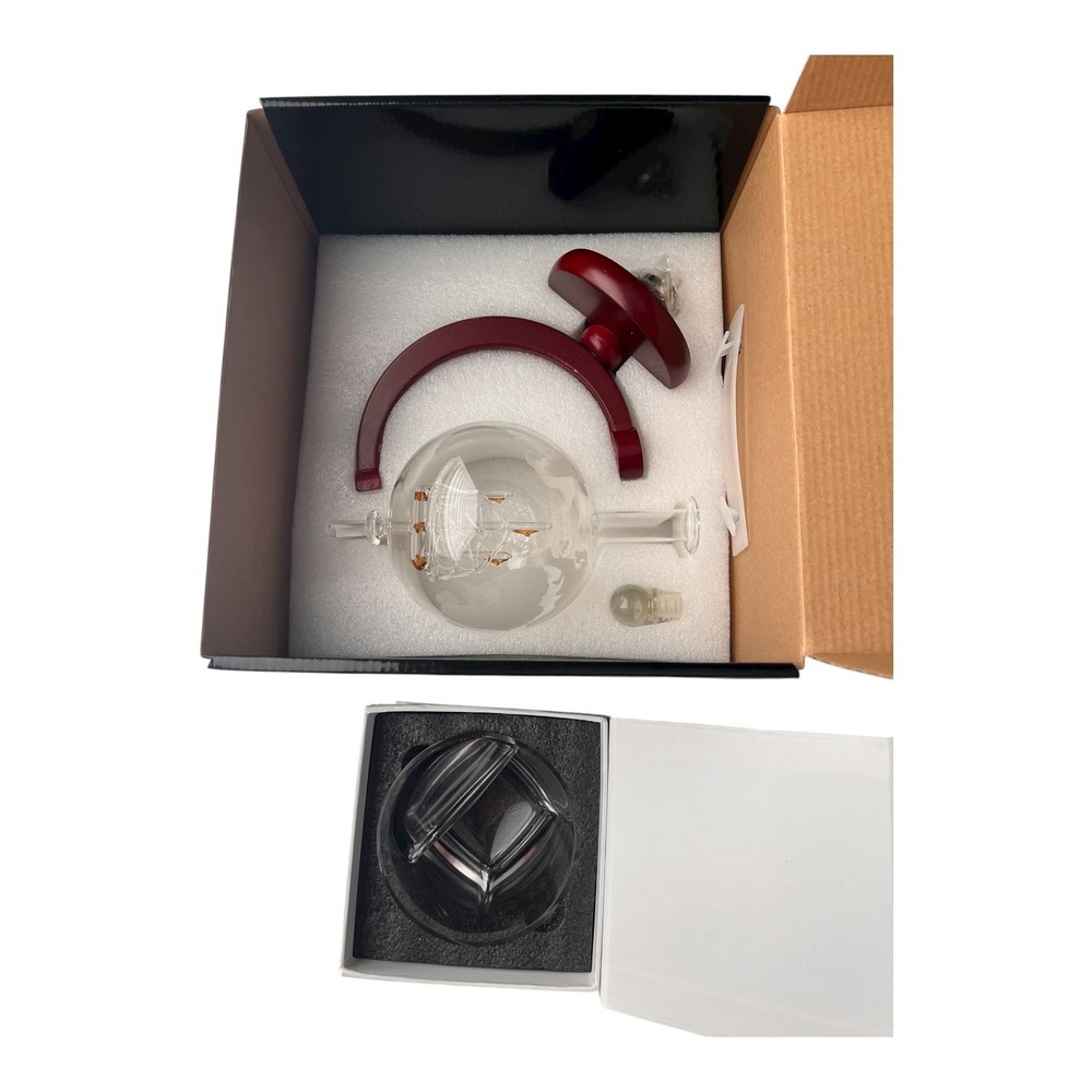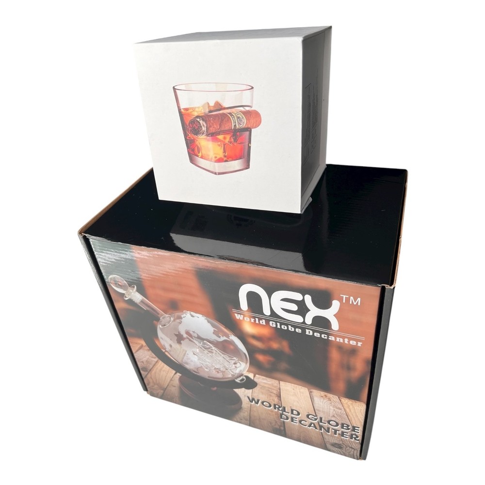 Whiskey Globe Decanter Set With Etched World Map and Antique Ship Wooden for