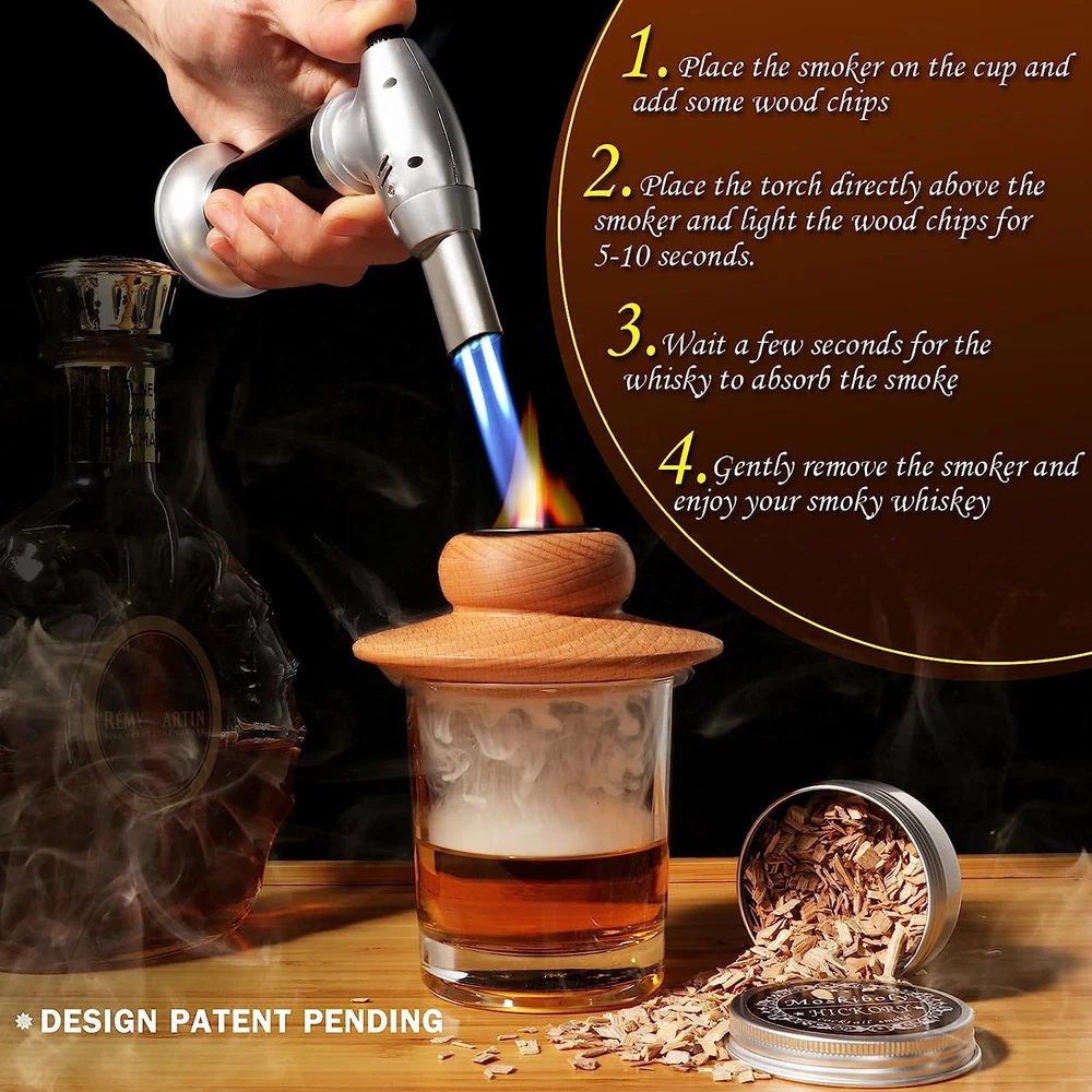 Whiskey Smoker Kit with Torch, Cocktail Smoker Kit, Old Fashioned/Bourbon/Smoker