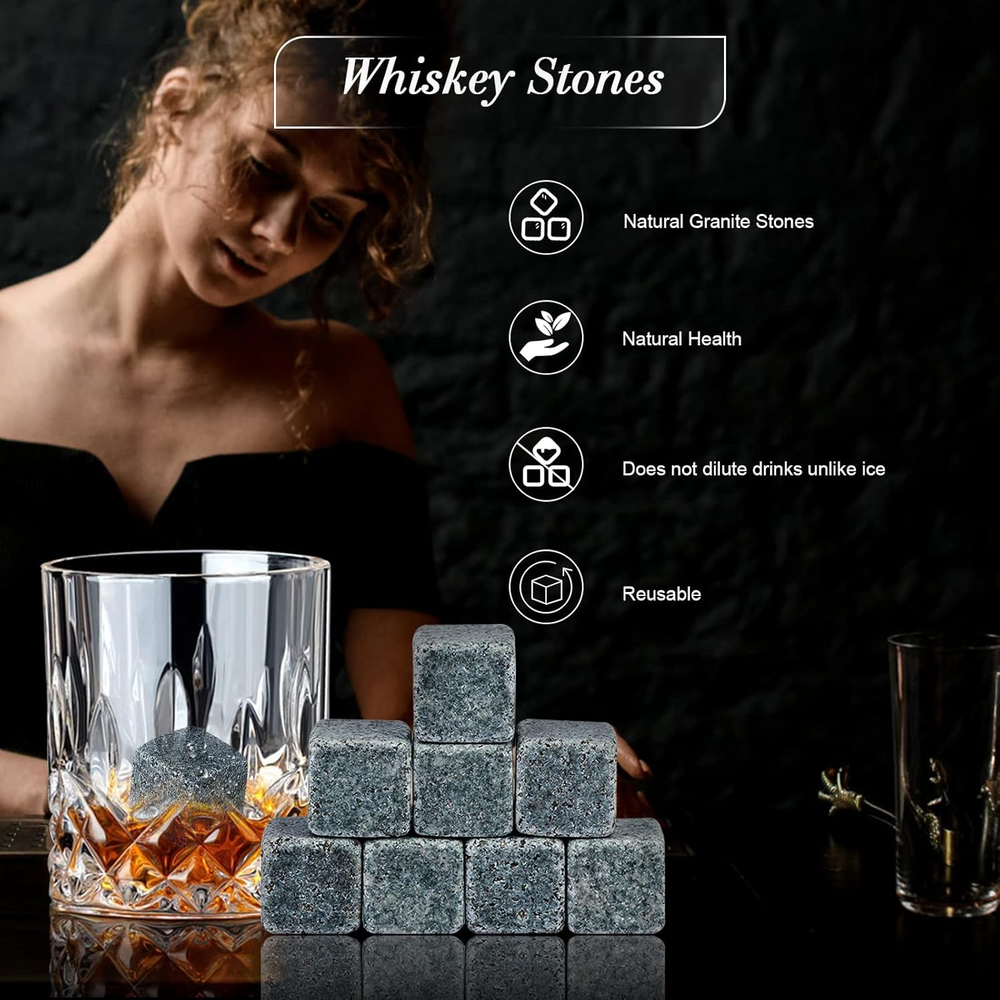 This whiskey gift set is absolutely perfect for any spirits lover! The natural stones chill drinks without watering them down, and the crystal glass feels luxurious. The wooden box adds a classy touch—great presentation for gifting. Sturdy, elegant, and practical—definitely worth it!