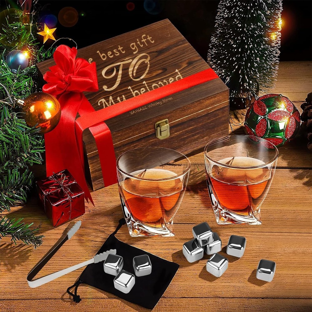 Whisky Stones Glasses Gift Set 8 Whisky Chilling Rocks 2 Glasses Wooden Gift Box. Condition is New. Shipped with USPS Ground Advantage.
