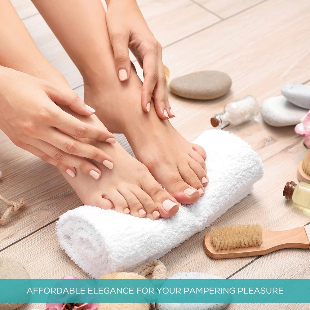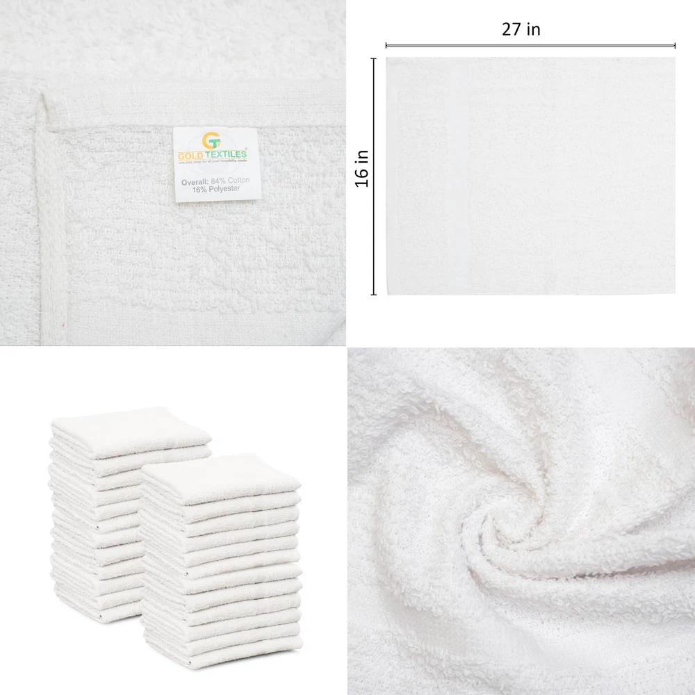 believe that everyone deserves quality and comfort without breaking the bank. Our hand towels sized 16x27 are designed to offer practicality and affordability, making them a perfect choice for everyday use. Despite their budget-friendly nature, we never compromise on the essential features you seek in a hand towel - softness, absorbency, and durability. Size & Quantity: Our 16x27 bulk white hand towel are specifically designed to cater to all facial and body treatments in spas and salons. With a high demand for face and esthetician towels, they provide ample space for any procedure. they come in a 60 Pcs bulk pack ensuring you always have a clean towel ready for your next client, maximizing efficiency and hygiene in your daily operations. Economy Grade Quality: Crafted from a cotton Blend, our inexpensive bathroom hand towels offer a gentle touch for all skin types. They meet the rigorous standards of beauty professionals and commercial uses while being budget-friendly. Perfect as salon towels , gym towels & hand towels for bathroom. Lightweight & Absorbent: Weighing 2.9 pounds per dozen, Their lightweight design ensures easy handling during use. these workout towels possess good absorbency. Made from 84% cotton and 16% polyester, they offer both comfort and longevity. Multipurpose usage: These face towels are mutipurpose can also be used as spa towels and for home kitchen drying and cleaning, ideal for usage where repeated machine washing are necessary. Work great as barber towels, workout towel, massage towels, esthetician towels, manicure & pedicure towel, vacation rental properties, shelter homes ,pet grooming towel, clubs and recreational facilities Easy Care & Quick Dry: Machine washable and fast drying, making them convenient for daily use. they dry quickly, enhancing cleanliness and convenience in your daily routine. For best results, wash separately to maintain their quality and absorbency over time.