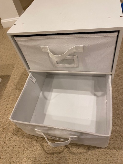 Features: With Drawers Item Weight: 16 lb Minimum Height: 14 Finish: Painted Type: Cube Storage Item Height: 14 in Item Width: 14 in Maximum Width: 14 Material: Fabric, Particle Board Mounting: Free Standing Required Tools: No Tools Required Number of Shelves: 2 Maximum Length: 14 Number of Items in Set: 3 Set Includes: Cube Storage, Storage Box Brand: Unbranded Style: Modern Color: White Additional Parts Required: No Item Length: 14 in Room: Bedroom, Dining Room, Entryway, Home Office/Study, Living Room Shape: Square Pattern: Solid Assembly Required: No Door Mechanism: Open Face