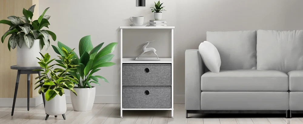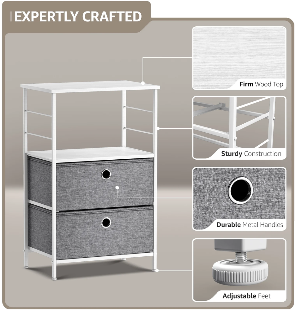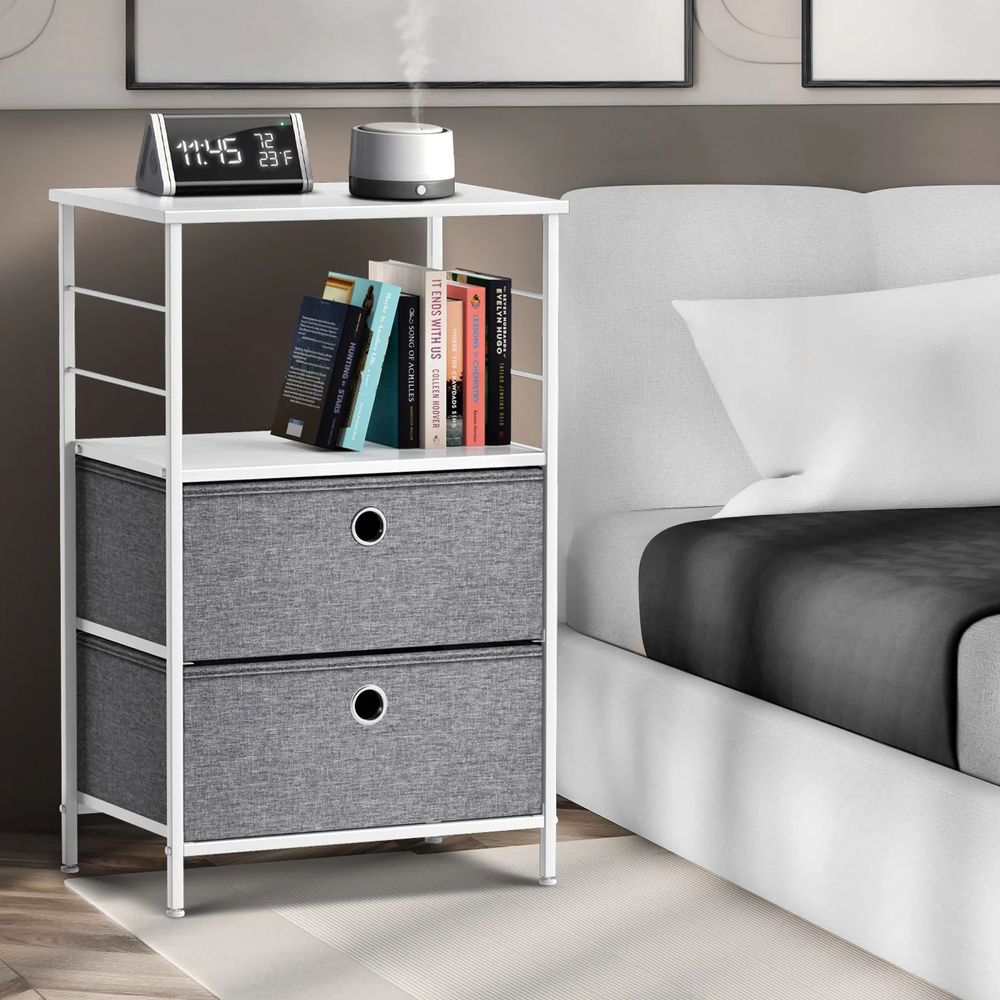 This 2-drawer dresser is such a great addition to my bedroom! The white finish looks clean and modern, while the fabric bins keep everything neat and easy to access. The wood top is sturdy enough for my lamp and books, and the steel frame feels solid. Perfect for small spaces—fits nicely next to my bed without feeling bulky. Love how it adds extra storage without sacrificing style. Highly recommend for dorms, apartments, or any room that needs a little organization!
