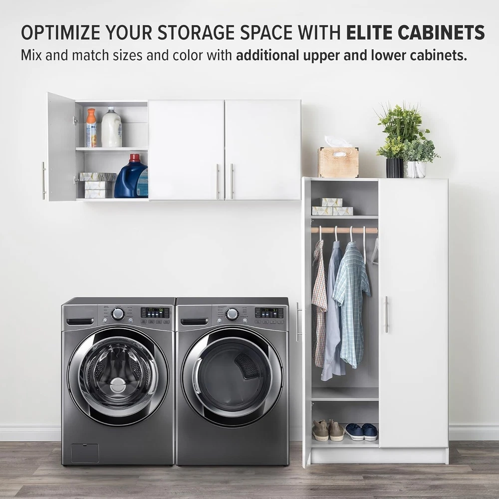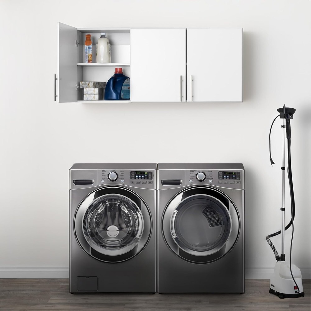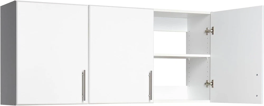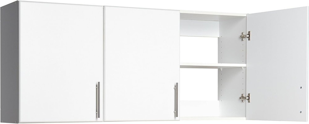 Elite 3-Door Wall Cabinet/Pantry Storage Cabinet | White, 54W x 24H x 12D | Versatile Garage Wall Cabinet by SPACE EFFICIENCY: Optimally designed as a bathroom storage cabinet or garage cabinets wall mounted, our wall mount cabinet synergizes with your laundry washer and dryer, saving floor space for other uses. DURABLE CONSTRUCTION: Our storage cabinets, whether used as a floating cabinet or wall cabinets in the laundry room, are made of non-toxic, CARB-2 compliant laminate woods, enhancing the durability and functionality of your laundry cabinets and storage. DESIGN FLEXIBILITY: Experience an adaptable storage solution with our cleverly designed storage cabinet with doors, which can be opened to the left or right, suiting various laundry room cabinets wall mounted configurations and kitchen wall cabinet layouts. SLEEK STYLE: Our bathroom wall cabinet or small bathroom storage cabinet sports a chic white finish and satin nickel-finished handles, seamlessly enhancing your bathroom or kitchen storage with its eye-catching home decor appeal. EASY ASSEMBLY AND INSTALLATION: Our garage storage cabinet, whether used as wall cabinet storage or over the toilet cabinet, arrives flat-packed with an instruction booklet for simple assembly, befitting as a convenient bathroom cabinet wall mounted or an above toilet storage cabinet. Introducing the versatile Elite Wall Mounted Storage Cabinet, a fundamental organization and storage solution for your home. With measurements of 54"W x 24"H x 12"D, this compact yet efficient utility storage cabinet features three easy-pivot doors with six-way adjustable European style hinges and two adaptable shelves. Displaying a simple, clean aesthetic, this cabinet boasts a fresh white laminate finish, elegantly accented by satin nickel-finished metal handles. In homes or salons, these cabinets for storage with doors are designed to be safely installed above standard-sized appliances, making excellent laundry room storage cabinets or over toilet cabinets. The innovative design allows for doors to swing open to either the right or the left, providing flexibility based on your specific room layout. This robust and wall mounted cabinet is constructed in North America with durable, CARB-2 compliant laminated composite woods, promising quality and non-toxic reliability. The wall cabinets with doors and shelves ship in an intelligently compact flat-packed form including an instructional booklet, ensuring straightforward assembly upon arrival. Perfect as a small storage cabinet in kitchens, utility cabinet with doors, bathroom cabinet storage, pantry cabinets with doors and shelves, or even a garage wall cabinet, the unit can be stylishly paired with other wall cabinets to establish a cohesive storage system. Rising above typical bathroom organizers and storage cabinets, the Elite also makes a fantastic addition to salon cabinets and storage systems. Transform your space from a chaotic area into a haven of organized serenity with this white storage cabinet with doors. Whether you need kitchen cabinets or a food pantry cabinet for the kitchen, this cabinet optimizes your storage needs. This cabinet is also suitable for use as a bathroom towel storage cabinet or a bathroom organizer and storage cabinet. From kitchen pantry cabinets to bathroom cabinets and even estante para baño, the Elite Wall Mounted Storage Cabinet is your ultimate solution for stylish, robust, and organized storage.