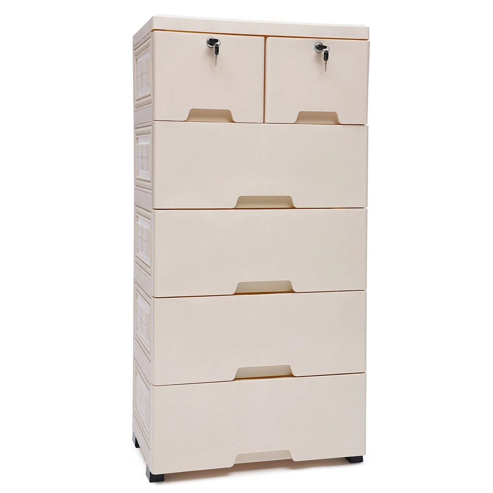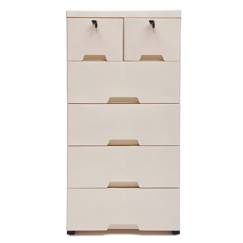 Description Are odds and ends cluttering your room? Are you still worried that the space at home is too small? Don't worry, this product can help you. This storage cabinet has 6 drawers that can store a lot of items to meet your storage needs and give you a neat space. Specification Color: Beige Color Material: Food-grade PP Shape: Rectangular Style: Modern Number of Layers: 5 Number of Drawers: 6 Load-bearing Capacity: 30kg/66lbs Product Size: 50*35*102cm/19.69*13.78*40.16inch Gross Weight: 7.9kg/17.42lbs Package Size: 51.5*40.5*49cm/20.2*15.9*19.2inch Package Included 6* Drawers 6* Drawer Panels 1* Top Panel 5* Frames 16* Panels 4* Wheel Covers 5* Wheels 4* Keys 1* Chinese Manual Notes Key Features High-quality Material: This product is made of high-qu Bedroom 6Drawer Dresser Storage Organizer Chest of Tower Closet Nightstand White Description: Are odds and ends cluttering your room? Are you still worried that the space at home is too small? Don't worry, this product can help you. This storage cabinet has 6 drawers that can store a lot of items to meet your storage needs and give you a neat space. Specification: Color: Beige Color Material: Food-grade PP Shape: Rectangular Style: Modern Number of Layers: 5 Number of Drawers: 6 Load-bearing Capacity: 30kg/66lbs Product Size: 50*35*102cm/19.69*13.78*40.16inch Gross Weight: 7.9kg/17.42lbs Package Size: 51.5*40.5*49cm/20.2*15.9*19.2inch Package Included 6* Drawers 6* Drawer Panels 1* Top Panel 5* Frames 16* Panels 4* Wheel Covers 5* Wheels 4* Keys 1* Chinese Manual Notes Key Features High-quality Material: This product is made of high-quality PP, which is strong, durable, and not easy to deform. Good material can extend its service life. Elegant Appearance: The beige color, as well as the classic design, makes it look elegant. It is a good decorative piece that can blend in with different home decor styles and add color to the home. Saving Space: This product is designed vertically. It makes full use of the unused vertical space to store items and occupies a small area of 50*35cm/19.69*13.78inch, which can save you a lot of space. Strong Load-bearing Capacity: The load-bearing capacity of this product is 30kg/66lbs, which is strong enough for you to store items without worrying about it shaking and tipping. Large Capacity: This product includes two small drawers and four large drawers, which allows you to distinguish the placement according to the size of the items. The 6 drawers make it possible to hold more items and meet your daily storage needs. Makes Space Neat: It has six drawers that make it easy for you to store as well as access your items. It can get your room out of clutter and back to a neat and organized state. Excellent Sealing: The drawer design makes this product well sealed to prevent dust as well as insects from entering. You can use it with peace of mind. Stackable Design: The stacking design allows you to combine and disassemble them according to your needs. You can store flexibly. Protect Your Privacy: This product comes with two drawers with locks, which can protect your privacy very well. Good Stability: This product is designed with a dense frame and has a large landing support area, so it is very stable. You can use it without worrying about it shaking and tipping over. Eco-friendly : The food-grade PP material is non-toxic, odorless, and good for human health, and it is also recyclable, which is very environmentally friendly. Convenient to Move: The four wheels on the bottom of the product are hard-wearing and make very little noise when in use, providing you with a quiet environment. At the same time, it slides flexibly, making it easy for you to move the product and for cleaning. Easy to Clean: The surface of this product is smooth and flat, which is easy to clean. You just need to wipe it with a wet rag. Easy to Install: This product is simple in structure and complete in the package. You only need a few simple steps to install it, which is very time-saving and labor-saving. Guaranteed Customer Service: We aim to provide quality products and services. If you have problems, please feel free to contact us. We will reply and solve the problem for you as soon as possible. Details Drawer Stops: Each drawer has raised stops on both sides to prevent the drawer from slipping out easily. Rounded Corners: The corners of this product are very rounded and smooth, which can protect you from collisions and is very safe to place in your home. Thickened Top Panel: The thickened top has a strong load-bearing capacity, which allows you to put a lot of items on it with peace of mind. It can also facilitate your access to commonly used objects. Recessed Handles: The drawers are designed with recessed handles, which makes it easier to access items and saves surface space. At the same time, the rounded handles protect your hands from scratches and are more aesthetically pleasing. Application It is suitable for storing clothes, toys, children's books, and other items. It can be placed in the crevice space next to beds, closets, sofas, and cabinets. Its load-bearing capacity is 30kg/66lbs. Please read the manual completely before installation and use, and pay particular attention to the safety instructions included. Please allow the slight color difference caused by the shooting light and 1-3cm error due to manual measurement, and make sure you do not mind before ordering.