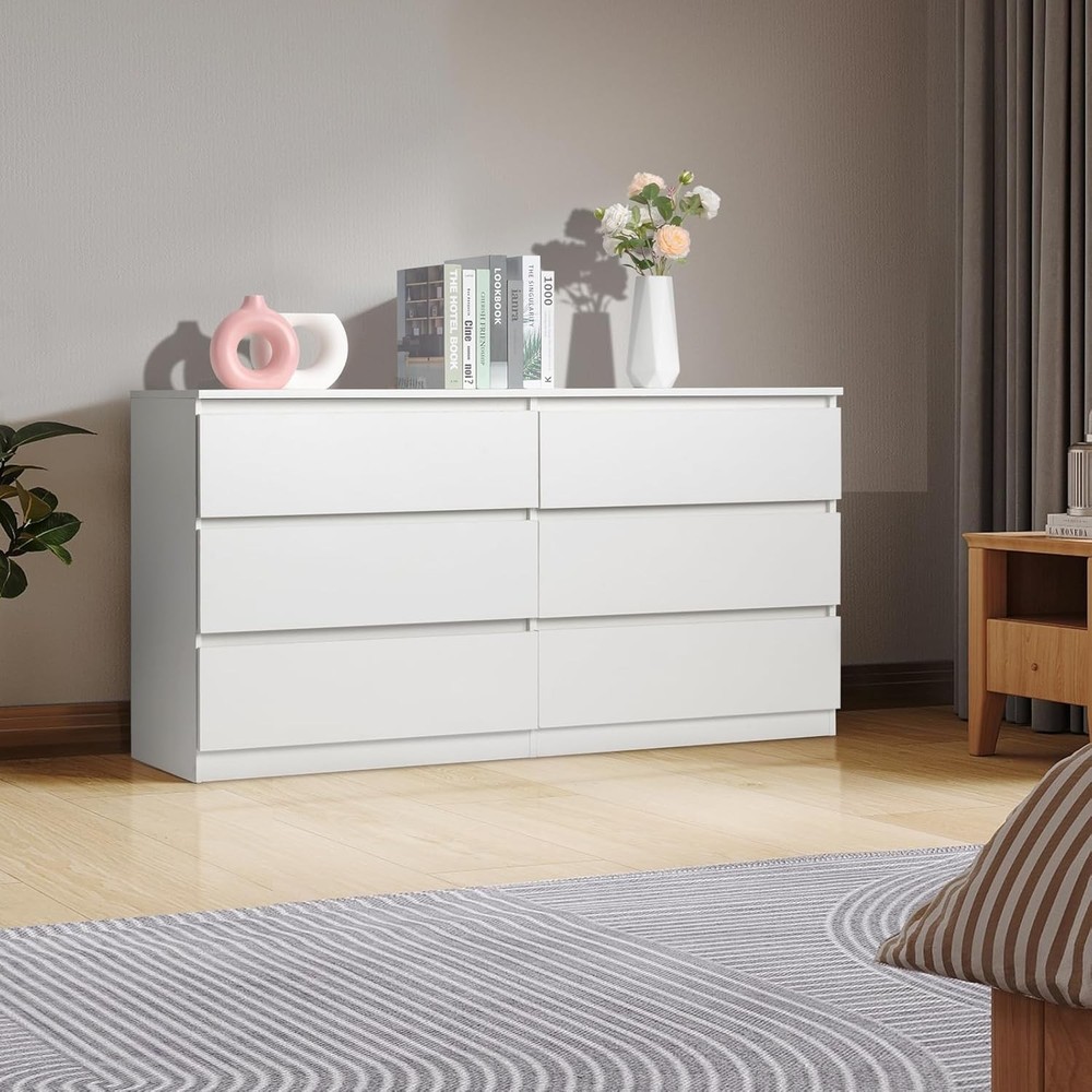 White 6-Drawer Dresser for Bedroom - Modern Chest of Drawers