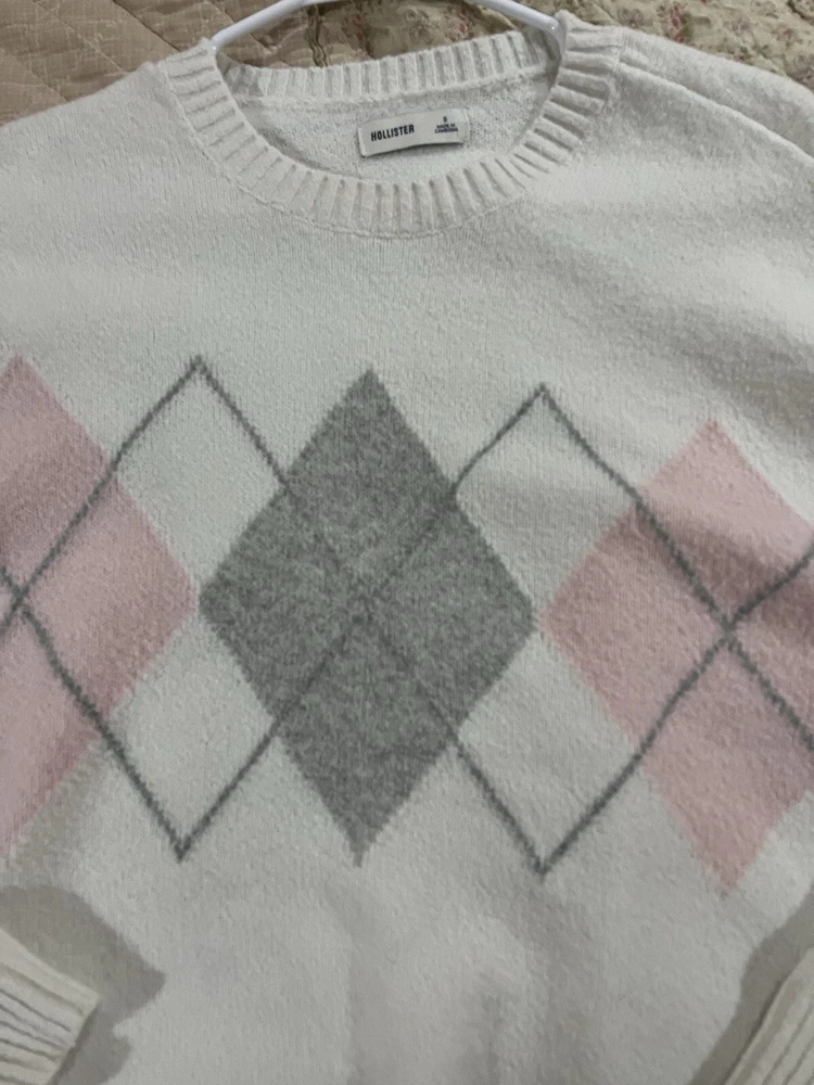 Pink Reindeer Sz L Green Knit Sweater Red Collar & Cuffs XMAS Sweater