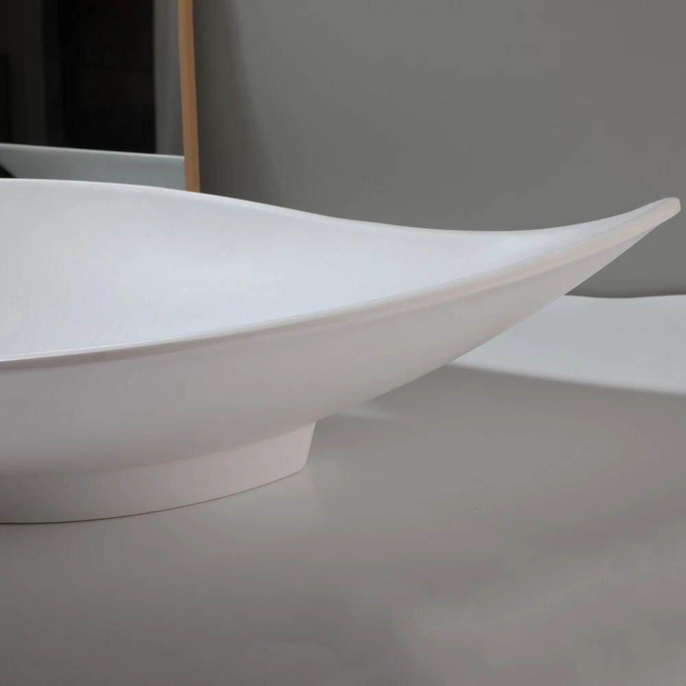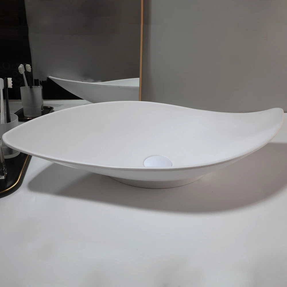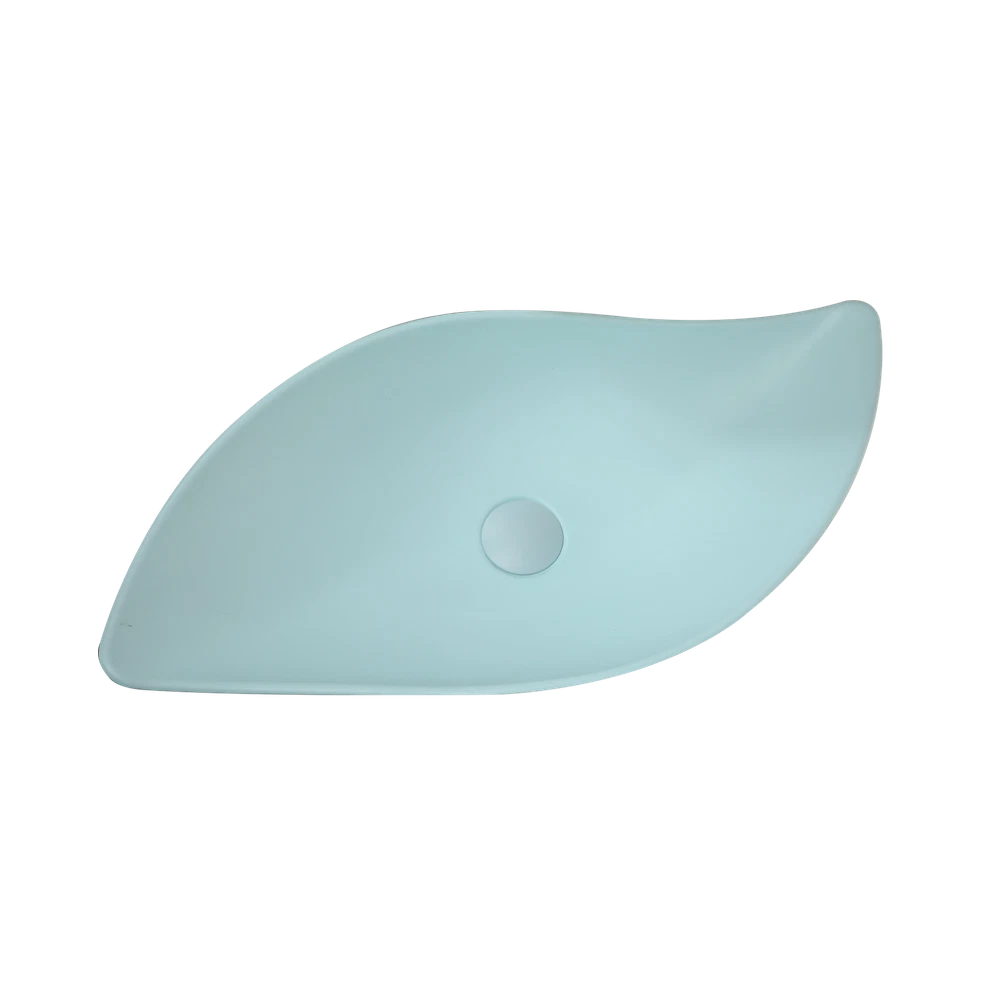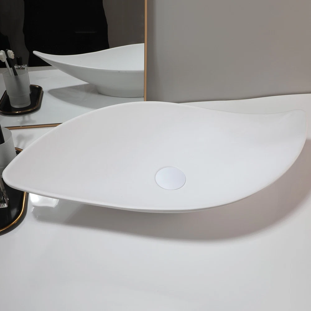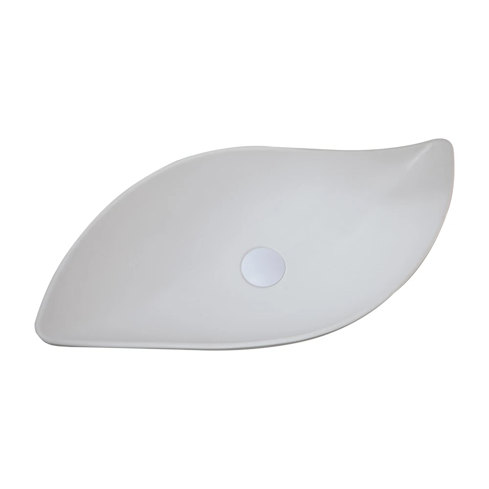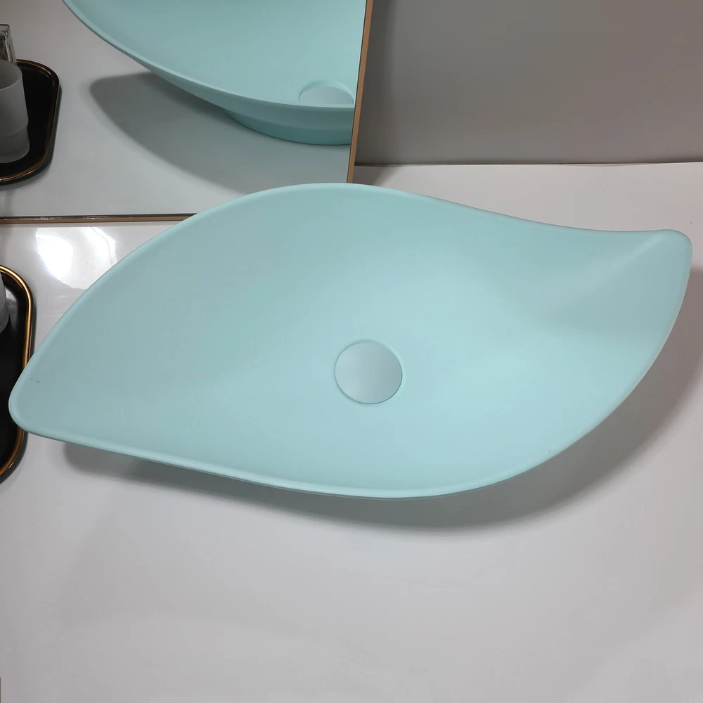 White Blue Stone Resin Leaf-Shaped Vessel Sink with Drain Set