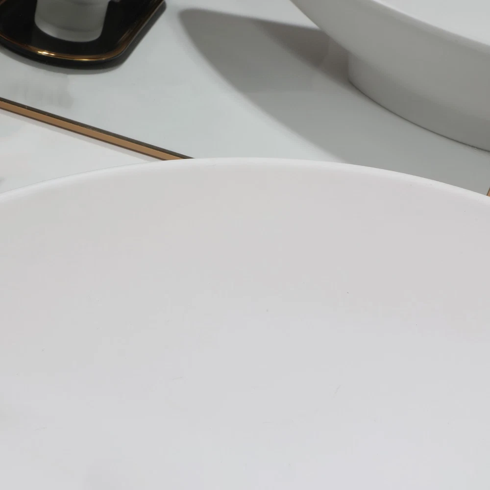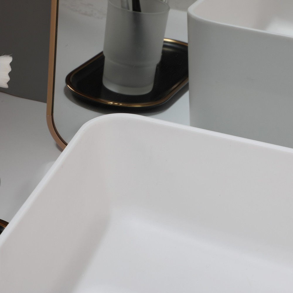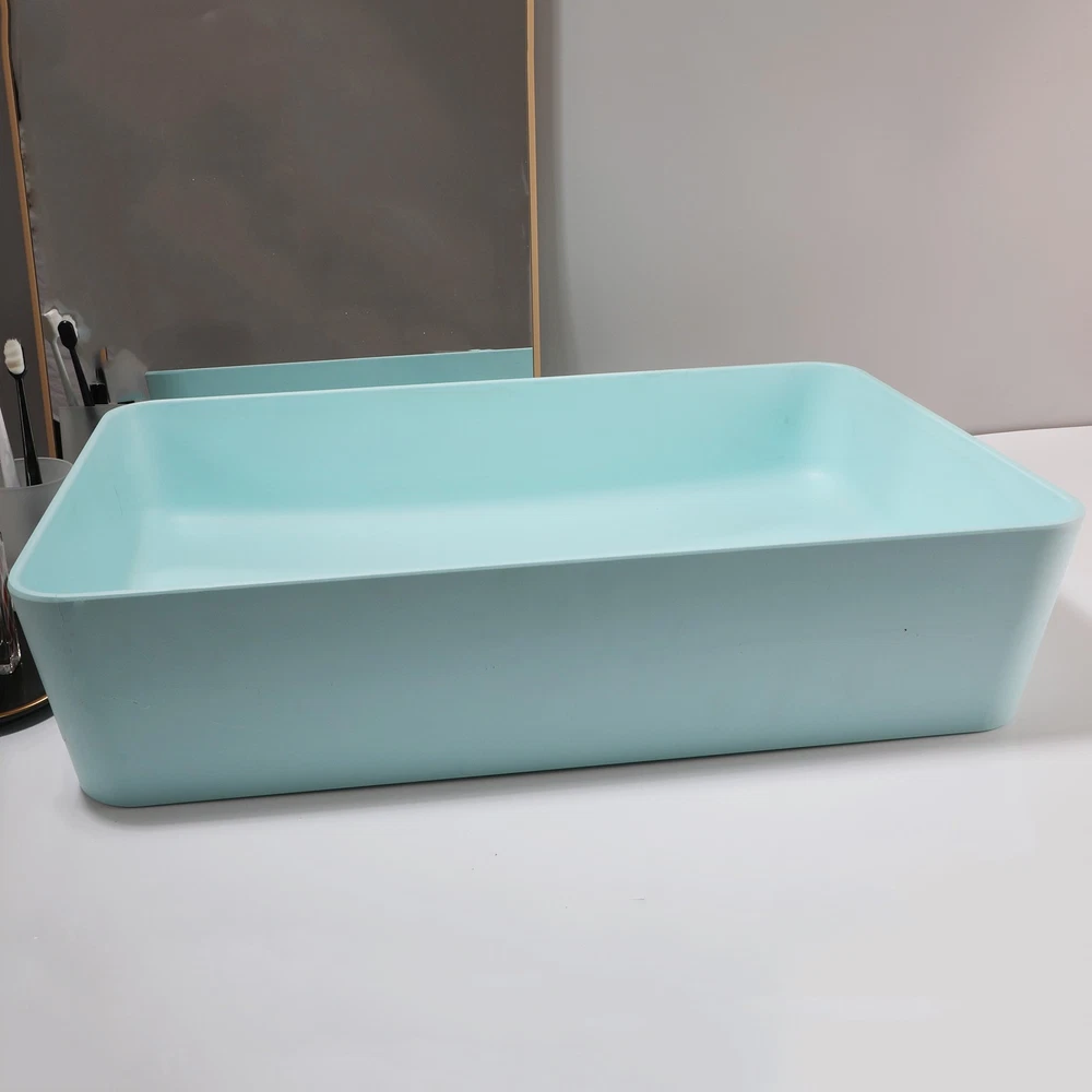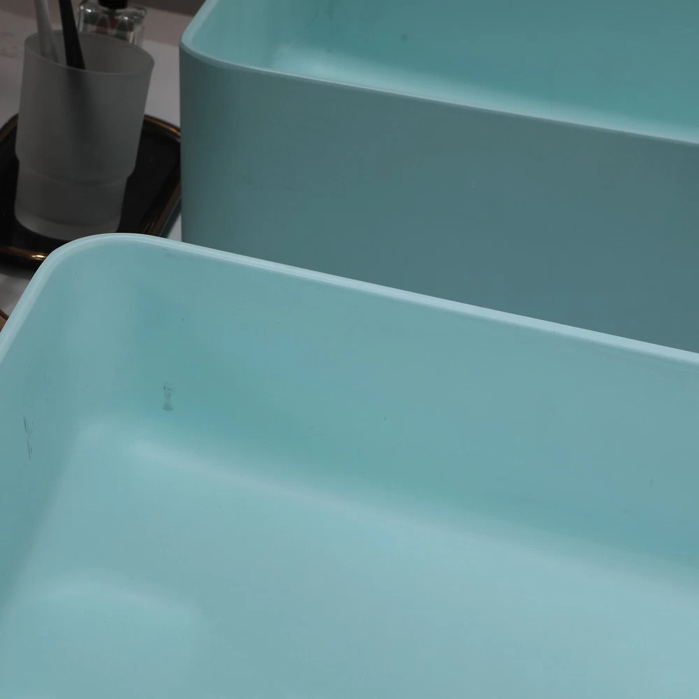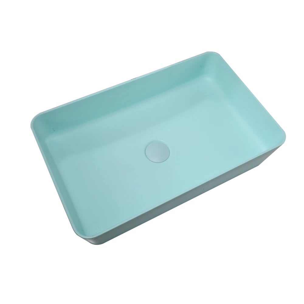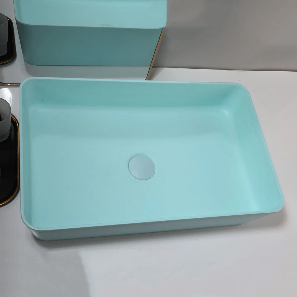 White Blue Stone Resin Leaf-Shaped Vessel Sink with Drain Set