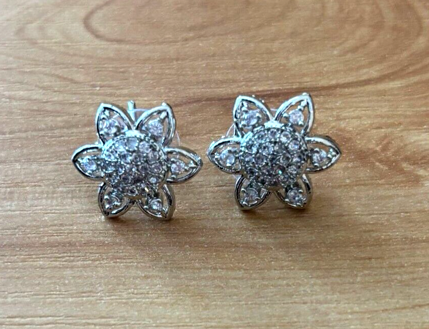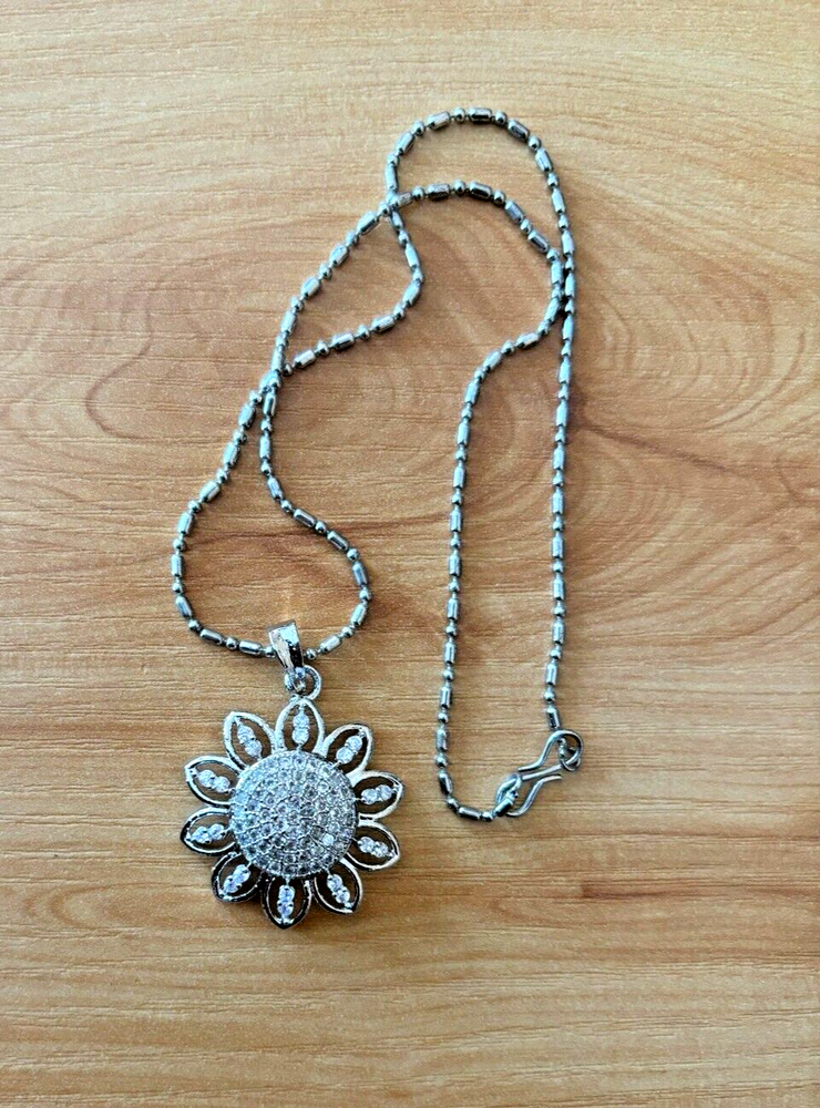 Enhance your jewelry collection with this stunning flower-themed jewelry set. This set includes: - *1 Pendant Necklace* with a dazzling floral design, featuring sparkling cubic zirconia (CZ) stones. - *2 Matching Stud Earrings* in a delicate floral shape, encrusted with shimmering stones. - *1 Stylish Chain* with a sleek, beaded design to complement the pendant perfectly. Crafted with high-quality silver-tone metal and adorned with brilliant CZ stones, this set is ideal for formal events, weddings, or everyday elegance. A perfect gift for someone special! *Condition:* - *New without tags* – never worn, in excellent condition. - No visible scratches or defects. - Comes as shown in the images.