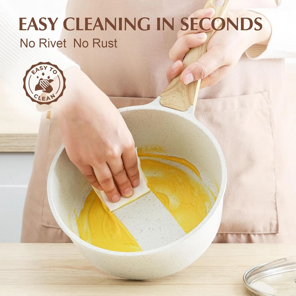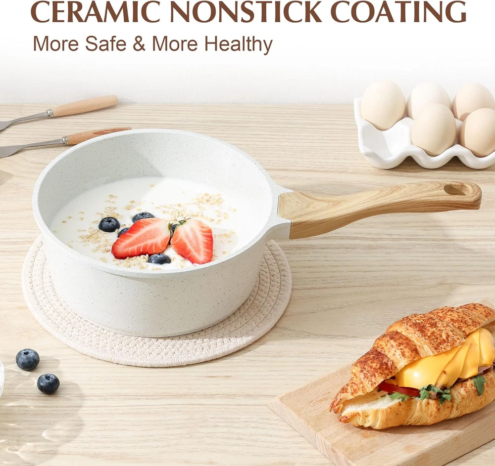 Store New Arrivals Add to Favorite View Feedback Contact White Ceramic Nonstick Saucepan with Lid 1.5 Quarts, Small Cooking Pot with Stay Cool Handle, Induction Compatible Saucepot, White Granite Coating, Free of Intentionally Added PTFE/PFOA/PFAS Description Item model number GO-SA-NG716W Product Dimensions 13.1"D x 6.3"W x 3.4"H Capacity 1.5 Quarts Number of Packs 1 Color White Ceramic Material Ceramic Item Weight 907.18 Grams Is Oven Safe Yes Finish Type Non-Stick Is Suitable For Stovetop Yes Coating Description Ceramic Size 1.5 Quarts Natural Ceramic Non-stick Coating - Improved ceramic nonstick coating, super nonstick performance even after many years of use. Ceramic coating features high hardness, scratch resistance & wear resistance. SENSARTE ceramic coating is 10x harder and 20x longer lasting than traditional coatings. Safe & Healthy - SENSARTE natural ceramic nonstick saucepan is free of intentionally added PFAS, PFOA, lead, and cadmium. Safe cooking for your family and healthier diet with less oil. Easy Cleaning & Multifunction - No rivets design inside, more easy to clean. Rinse with water and wipe with soft closet, time saving. Size: 6.3" diameter, 3.4" deep, 1.5 Quart, ideal for everyday use from instant oatmeal, soup, sauce,roast, milk, pasta,egg,etc. Suitable For All Stoves - High magnetic conductive stainless steel base allows the 1.5 qt saucepan with lid nonstick to work on all cooktops, including induction. The core of small sauce pan is made of cast aluminum, which is sturdy, long-lasting and heats up quickly and evenly. Clear Lid & Stay-cool Handle - Long-lasting tempered glass lid makes this small saucepan convenient to see the cooking status and limits splashes on your stove. Woodgrain bakelite ergonomic handle is comfortable to grip and stays cool while cooking. Oven safe to 302°F. Product description 1 EASY POURING 2 SUITABLE FOR ALL STOVE 3 NO SPLASHES 4 ERGONOMIC HANDLE 1 SUPER NONSTICK 2 STAY-COOL HANDLE 3 TEMPERED GLASS LID 4 EASY CLEANING 5 SPACE-SAVING EXPLORE MORE PRODUCTS FROM SENSARTE Add to Cart Add to Cart Customer Reviews 4.7 out of 5 stars 7,540 4.5 out of 5 stars 7,818 4.5 out of 5 stars 7,818 4.7 out of 5 stars 7,540 Price $23.19 $ 23 . 19 $26.99 $ 26 . 99 $26.99 $ 26 . 99 $19.98 $ 19 . 98 Size 1.5/2.0.2.5/3.0 QT 8/9.5/10/11/12.5 Inch 8/9.5/10/11/12.5 Inch 1.5/2.0.2.5/3.0 QT Cooking Surface Material Ceramic Granite Ceramic Granite Nonstick ✔ ✔ ✔ ✔ Contain Lid ✔ ✔ ✔ ✔ Induction Compatible ✔ ✔ ✔ ✔ Free of Intentionally Added PFAS/PTFE/PFOA/PFOS PFOA/PFOS/APEO PFAS/PTFE/PFOA/PFOS PFOA/PFOS/APEO ABOUT US We offer the best prices around on high quality products. Our E-store includes media such as books, movies, music and games while offering electronics, toys, sporting apparel, clothing, tools, general home, garden items and more. SHIPPING We are always working hard to ensure your package arrives as soon as possible. Please understand that some factors like weather, high postal traffic, and the performance of shipping companies are outside of our control. We offer free shipping to the lower 48 states and ship within 2 business days of payment, usually sooner. We do not accept P.O. Boxes. Please provide a physical address. For shipping outside of the continental USA, we only use eBay's Global Shipping Program.The item is shipped to KY and then sent to the rest of the world. International customers are responsible for all duties and taxes. Continue to check out in order to calculate costs for shipping the item to your country. Messages regarding eBay's Global Shipping Program MUST be directed at eBay EXCLUSIVELY. RETURNS We offer a 30-Day Return Policy on items which you are not completely satisfied with. You have the option for a full-refund or an exchange of the item. No returns are available on items shipped outside of the USA. PAYMENT We accept PayPal. CONTACT US This page content is yet to come Please ad us to your favorite seller and visit again later Thank You CUSTOMER SATISFACTION We try our very best to make sure every customer is completely satisfied. If there's a problem, message us! We're happy to help. WE ACCEPT Copyright © 2021 AutoDS. | All Rights Reserved