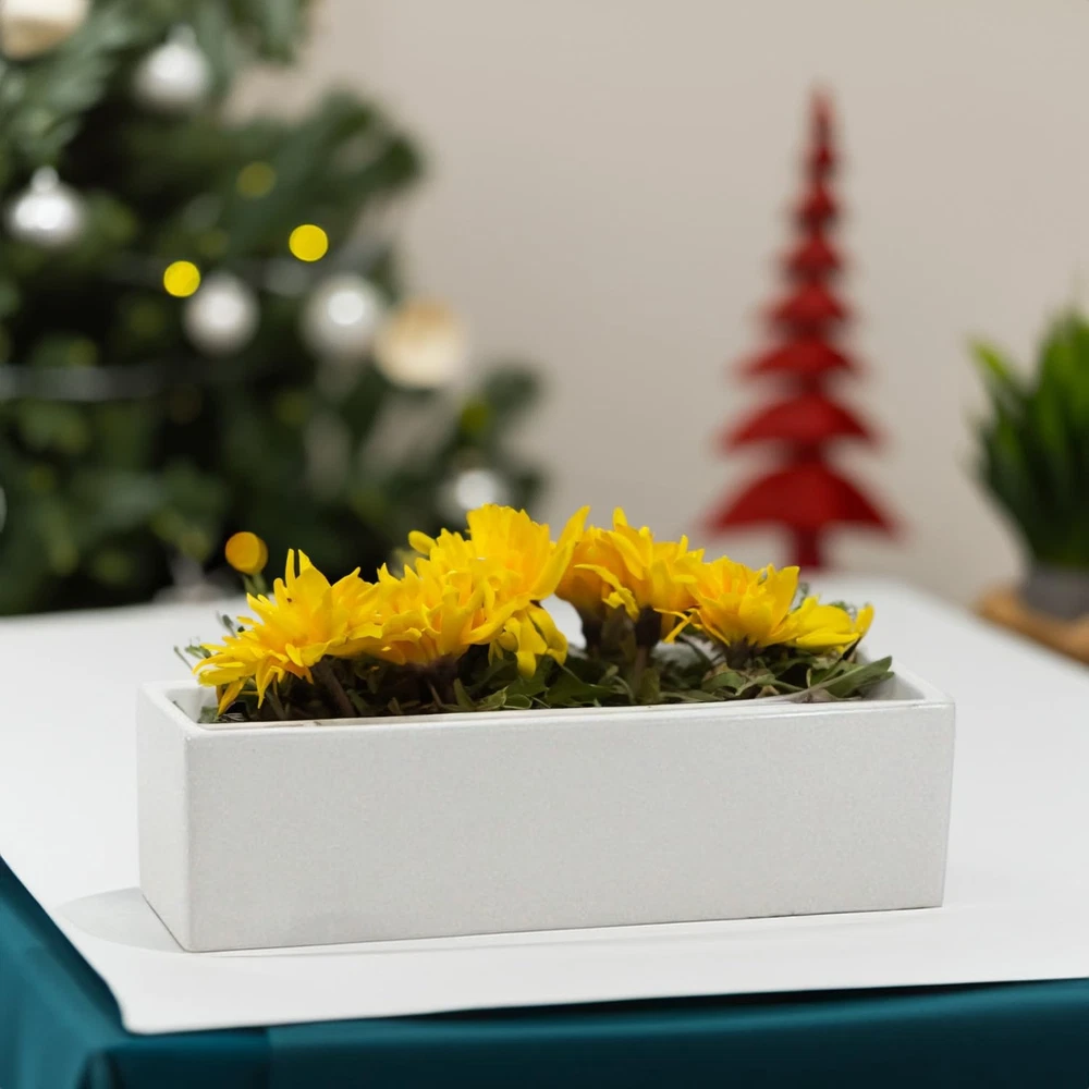 WGV International DBA Wholesale Glass Vases International’s () ceramic Long Rectangle planters and pots are exclusively designed to be unique, functional heirlooms for those who seek to add a textured vase style to any setting. By using foundational ceramic crafting principles of precision, dedication, and creativity has created a beautifully inspired line that contains beautiful bold colors. This line includes textured vases smooth surfaces that bring whimsy and movement to your interior design. Royal colors bring instant style and design to these trendy chic vases making them perfect for all types of settings and usages. All Wholesale Glass Vases International’s ceramic cylinder vases make great wedding gift ideas, wedding centerpieces, tabletop decoration, entryway vase, flower vase, or home office decor. These traditional pieces give your home office decor a modernly trendy facelift. Add flowers if you wish, but these cylinder vases can also stand alone as a stand alone table vase. Shop all ’s ceramic cylinder planter vase pots for more planter vase, textured vases, and flower vases. WGV ceramic vase decor for home, apartment, or condo. Perfect organic accent for any kitchen, entryway, bathroom, dining room, living room, or master bedroom. Add elegance to your nightstand, bookshelf, coffee table, dining table, patio, or porch. Business Decor: Sophisticated, earthy accent ideal for a reception area, lobby, lounge, entrance, or waiting area. Modern decor for the conference or boardroom, or as a single white ceramic vase at a restaurant for dining tables. Other Uses: Use as a wedding gift, home office decor, flower pot, flower vase, or housewarming gift. Durable Ceramic Construction: Made from sturdy ceramic material for long-lasting use. Versatile Decor: Can be used as a centerpiece, floral vase, or decorative accent for any room. Flower Pot Design: Rectangular shape with raised edges provides a natural look for indoor gardening. Easy to Mount: Can be set on a table or shelf to display your favorite plants or flowers. Vibrant White Color: Eye-catching white finish adds a clean, modern look to any space.