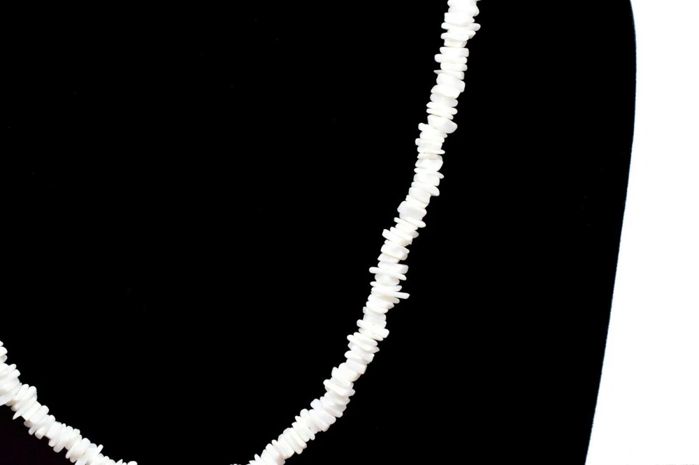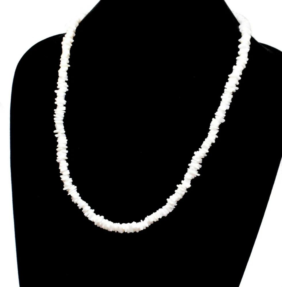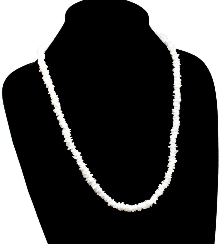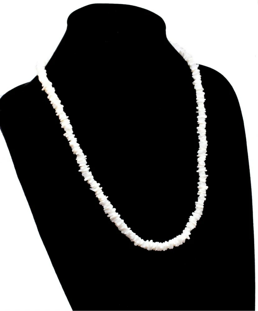 White Chipped Puka Sea Shell Beach Surfer Chic Festive Necklace 24"