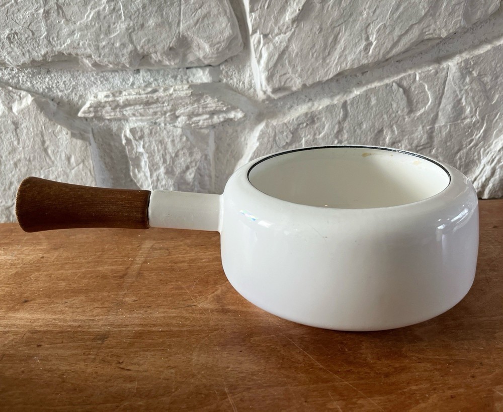 Dansk JHQ (Jens Quistgaard) 1.5 quart sauce pan made in France. White enamel and teak Very good, vintage, gently used condition. No chips or major scratches. No lid- great replacement for you if you have this pan and it’s getting banged up. Measures 7”across, and just under 4” deep. Last photo shows the other Quistgaard pan I have listed separately. Happy to ship together if you purchase multiple items!