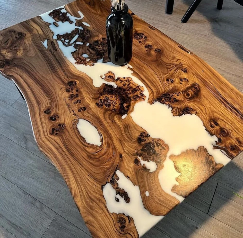 White Epoxy Table, Dining Epoxy Table, live Edge Table, Wood Table, River table
