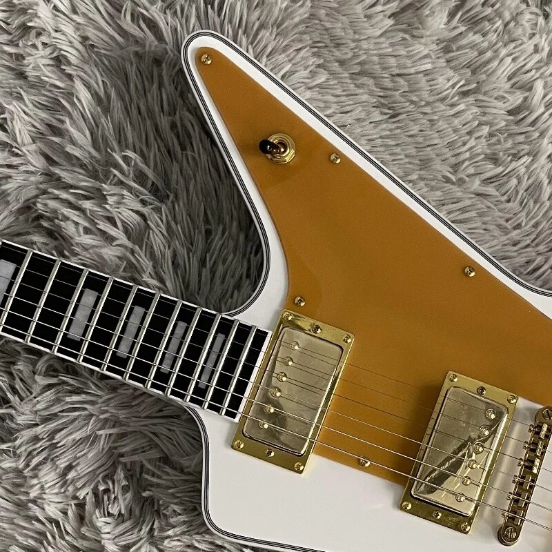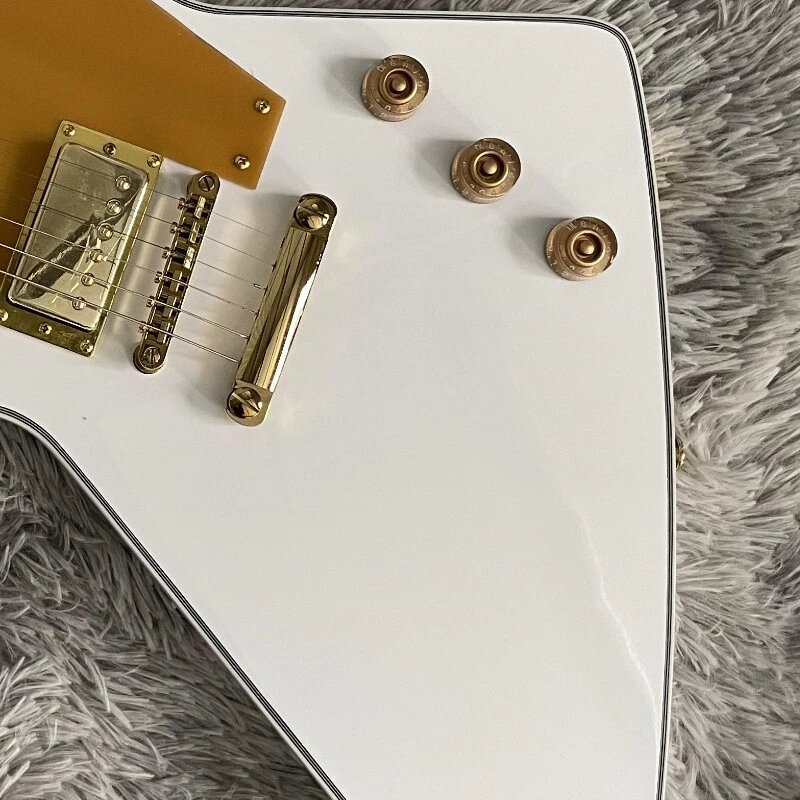 White Explorer 70s HH Pickups Electric Guitar Gold Pick Guard Factory Outlet Instruction: Our company is located in China,specializing in producing various kinds of guitar and its accessories. Currently we produce over 200 different models of electric and acoustic guitars! That not only look fabulous, but are extremely playable and the quality truly extends above the price tag. Every guitar is made with painstaking effort, we design and manufacture with our hearts, so that every guitar is unique. Features: Body:Mahogany Neck: Mahogany Fingerboard: Black Pickups:2 Humbuckers Pickup Switch:3-ways Electronic:1 Volume 2 Tone Bridge:T-O-M Hardware:Gold Joint:Bolt on Nut width: 43 mm Scale Length:24.7 inch Quality Guarantee All of our products must pass a detailed inspection and quality control check before leaving our facilities. This ensures that our products will meet the global standards for instruments, that have been set over many decades. Note: Remember we make these guitars by hand. And we don't just make one. Things like wood grain, texture, and color, may differ slightly than the one pictured. We do many custom builds so please contact us today with those ideas on that next one of a kind guitar. Since we are the manufacturer we are also able to offer you WHOLESALE pricing, with extreme consistency in product. Delivery Time Once payment has been confirmed, your item will be shipped within 3 or 30 business working days.That deoends on speciafic goods deliver ways.The speed also base on Custom Clearance Speed, which we can't control.So if you want this for your gig next weekend it probably wont make it on time, so please keep that in mind when ordering. We package very carefully but can highly recommend shipping your newbaby in a protective soft or hard case. Return Policy Please contact us within 3 days of receiving your damaged or defective item and we can start the exchange/return/refund process. If there is a delay in handling time we will let you know. Please make sure your shipping address is current and updated. Customer service All emails will try to be answered within 24 hours. We do receive a lot of emails and sometimes they get lost so, If you do not receive a reply within a few business days, please kindly re-send your email and we will reply back you as soon as possible. Please contact us first, our customer service representatives are here to assist you.