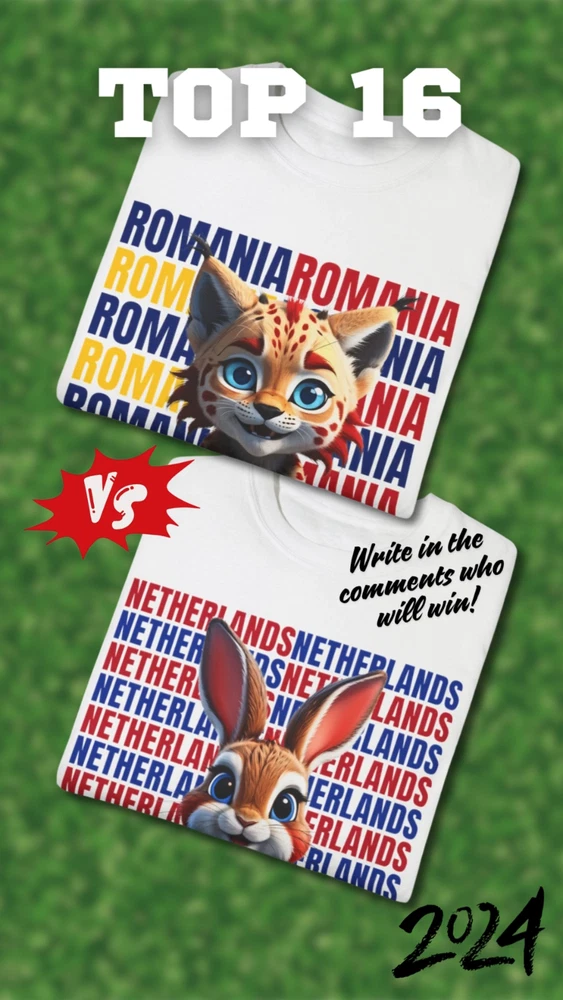 Celebrate your favorite Euro 2024 Round of 16 teams with our exclusive T-shirts, each uniquely designed with an animal symbolizing the country's strengths and spirit. Romania - Lynx: The lynx reflects Romania's mystery, agility, and rich cultural history. UEFA Euro 2024 Football, Round of 16 T-shirts, Animal Symbol T-shirts Comfort Colors introduces the “Comfort Colors 1717” garment-dyed t-shirt; a fully customizable tee made 100% with ring-spun cotton. The soft-washed, garment-dyed fabric brings extra coziness to your wardrobe while the relaxed fit makes it an excellent daily choice. The double-needle stitching throughout the tee makes it highly durable while the lack of side-seams helps the shirt retain its tubular shape. Discover all 58 colors in our Comfort Colors 1717 color charts below. .: The Comfort Colors 1717 tee is made with medium fabric (6.1 oz/yd² (206.8 g/m²)) consisting of high quality, 100% ring-spun US cotton for long-lasting comfort. .: The relaxed fit keeps the wearer comfy in both casual and semi-formal settings while the crew neckline delivers that classic, neat style which makes it perfect for accessorizing. .: The pre-shrunk fabric ensures a consistently great fit. Check all available sizes in our Comfort Colors 1717 size chart. .: All Comfort Colors 1717 shirts feature pre-shrunk cotton for size retention and a signature sewn-in twill label. .: Made using 100% US cotton that is ethically grown and harvested. Gildan is also a proud member of the US Cotton Trust Protocol ensuring ethical and sustainable means of production. .: Available in 58 colors. Check all available colors in our Comfort Colors 1717 color charts