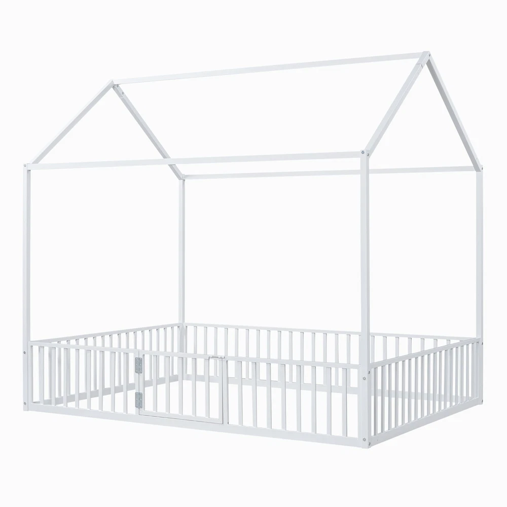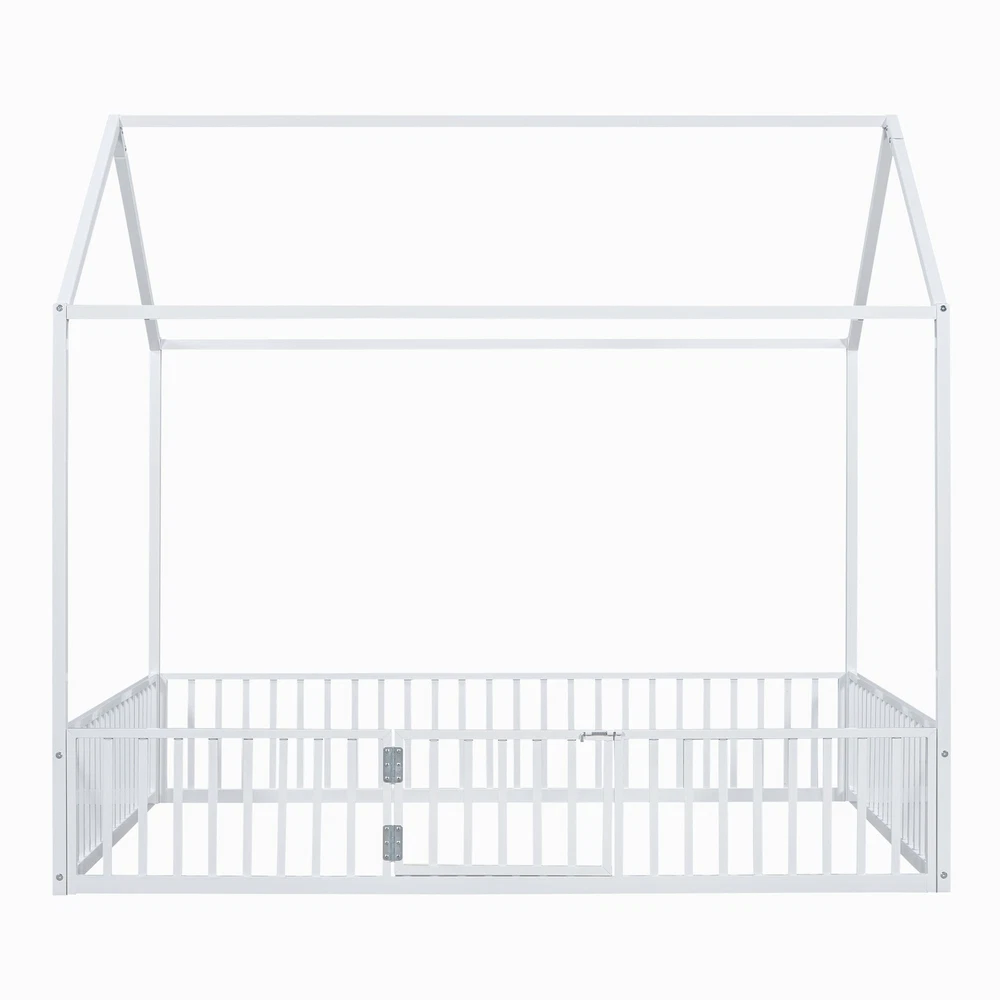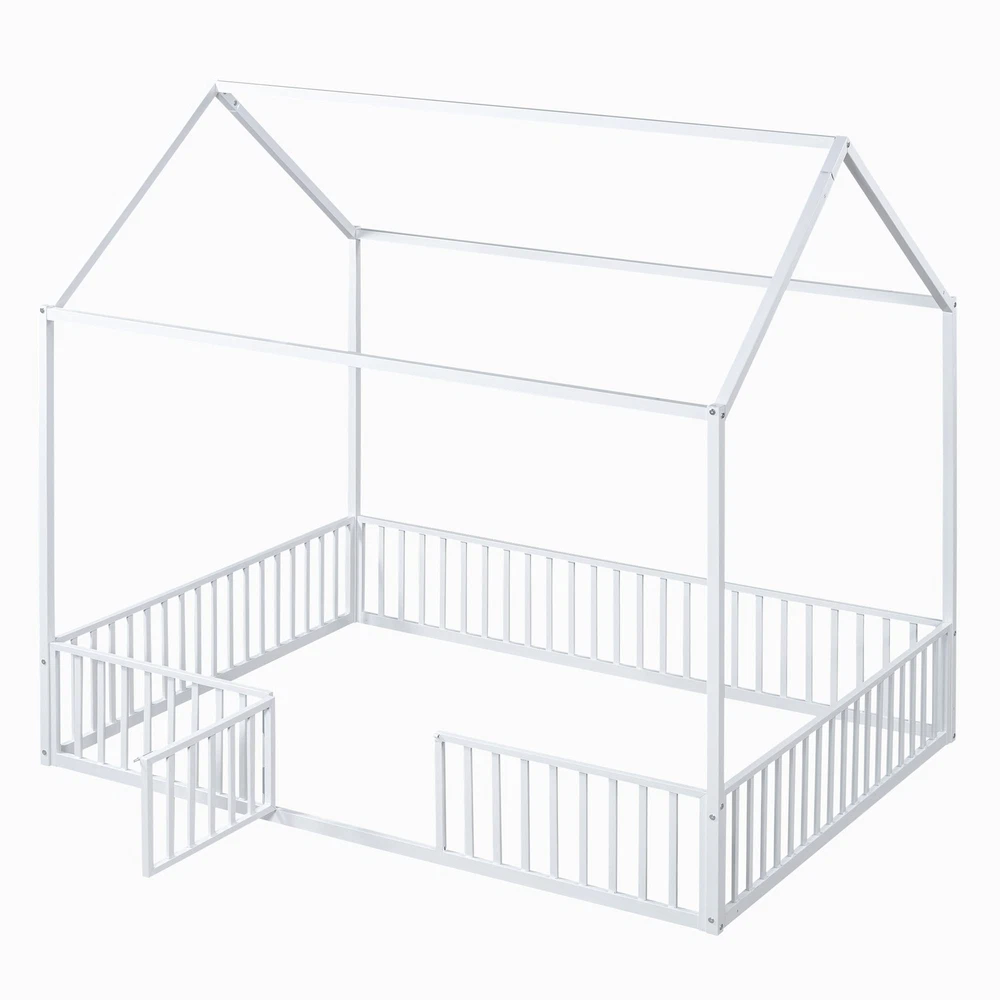 Specifications Place of Origin #originPlace# Main Color White Main Material Metal Dangerous Goods #dangerFlag# Dimensions & Weights Assembled Length (in.) 77.00 Assembled Width (in.) 56.10 Assembled Height (in.) 71.50 Weight (lbs) 72.00 Product Features [House-Shaped Design] The house bed featuring a classic house-shaped, this imaginative bed is equipped with a whimsical sky roof and uniquely shaped guardrail for a fun bedroom environment that your child will love. [Distressed Washed Design] This house bed has a distressed washed design, which gives a very special feeling and makes this bed unique. [A Better Space to Play] You can choose not to put the mattress in the bed frame, but let the child freely DIY this space to fully stimulate the child's creativity. [Fence with Door] The bed is fenced around the perimeter, but it is not a completely enclosed space because it has a small door over the fence. Kids can enter and exit freely through this small door. [Solid Construction] The house platform bed crafted from high-quality metal can last for long time use. The roof and fence are made from metal, ensuring strong stability and durability. Description Full Size Metal House Bed with Fence and Door With a roof, fence and a small door that can be opened and closed, this bed offers an enclosed play area perfect for exploring their imagination. This bed has a washed old design, regardless of gender, suitable for different people. This bed comes with a fence and a sturdy metal frame, providing a safe space for your child to get a good night sleep. Description Material Metal Size Full Color White Numbers of Package 1 Spring Box No need Assembly Required Yes <