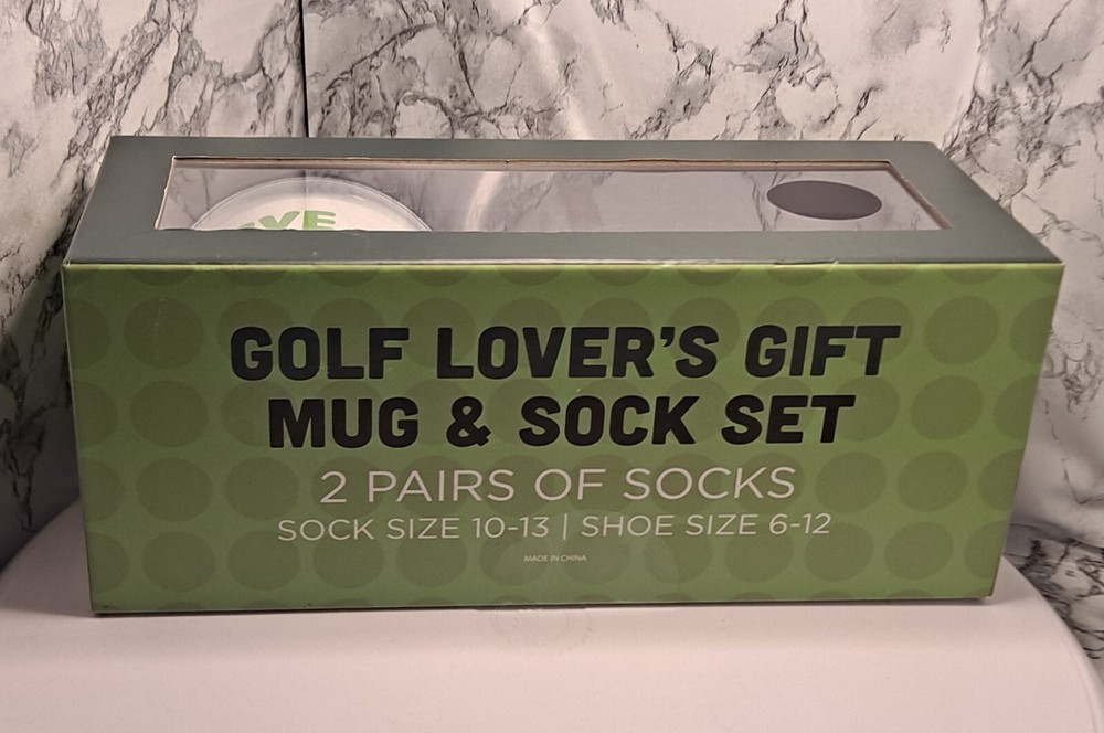 This three-piece set is the perfect gift for any golf-loving dad. The set includes a white coffee mug with a novelty pattern of a golfer, a pair of socks with the same pattern, and two pairs of socks. The mug has a capacity of 12 fl oz and is made of porcelain. It is both microwave and dishwasher safe. The socks are made of a comfortable material and come in a size that fits most men. This set is ideal for any occasion, including Father's Day. The brand is Crest Brands and it is made in China. Item#: C-5 PLEASE CHECK OUT ALL MY OTHER ITEMS THAT I HAVE FOR SALE. I'M LISTING STUFF AS QUICKLY AS POSSIBLE. THANK YOU.