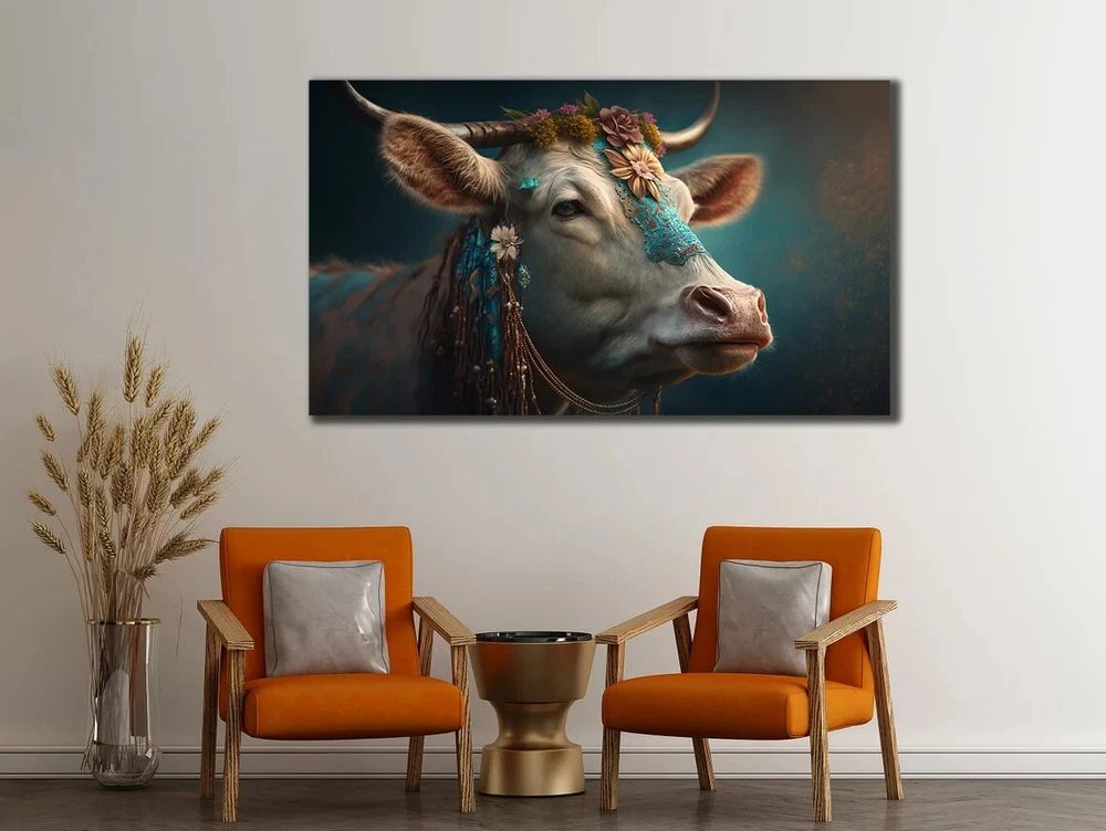 White Highland Cow Face Floral Paint Unframed Canvas Print Australian Wall Art
