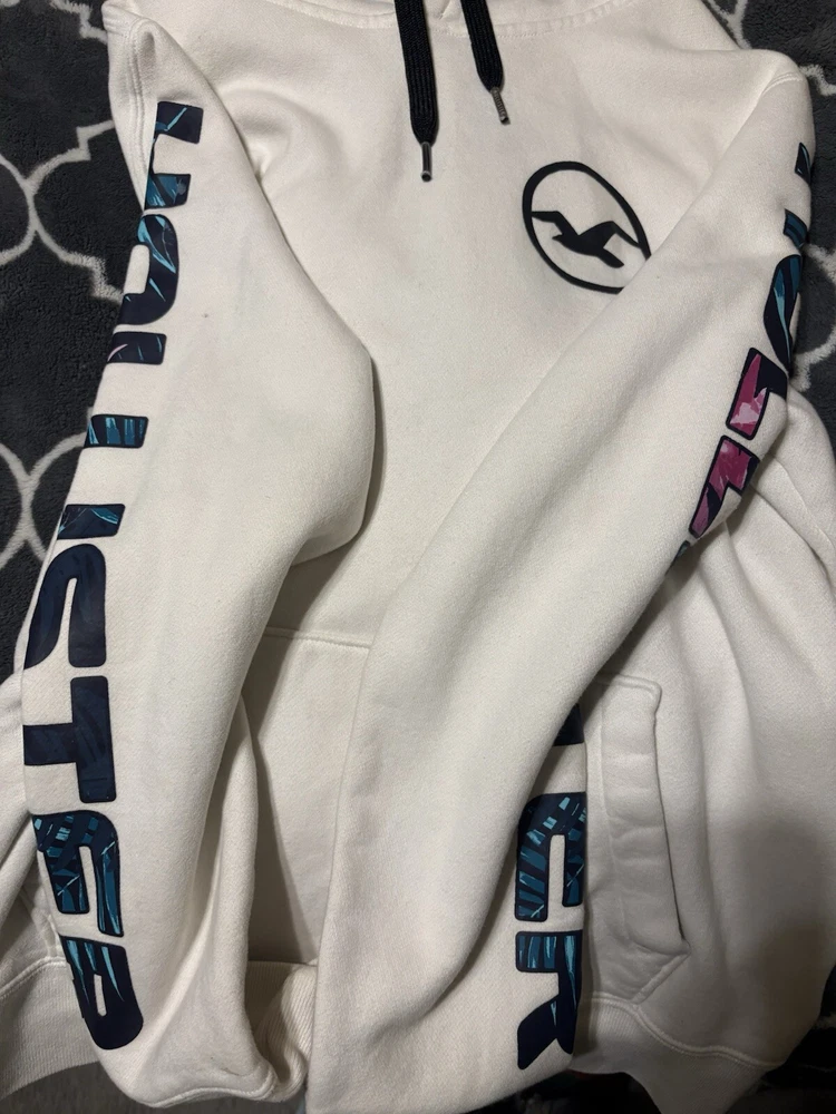 Stay cozy in this stylish white Hollister hoodie designed for women. Made from high-quality material, this hoodie is perfect for any activewear occasion. Its sleek design with the Hollister brand name makes it a must-have for any fashion-forward woman's wardrobe. The hoodie comes in a size S and is ideal for those who love a comfortable and snug fit. Its white color gives it a versatile edge, making it easy to pair with any outfit. Whether you're hitting the gym or running errands, this hoodie is the perfect addition to your activewear collection.