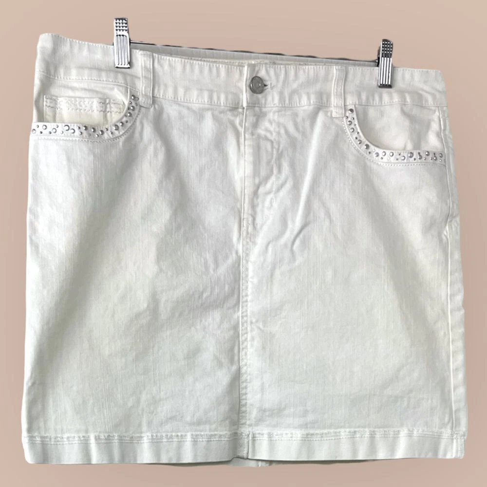 Great preowned condition (see pics for details) Features: • Style Profile: retro Y2K embellished beaded sequin minimalist classic denim • Flaws: no holes, stains or tears. Measurements: • Waist (flat lay) 19" • From top of waist to bottom hem 17.5" • We are happy to answer any questions. • Washing Instruction: machine washable Size: 12 Super fast shipping: We ship out the next business day!