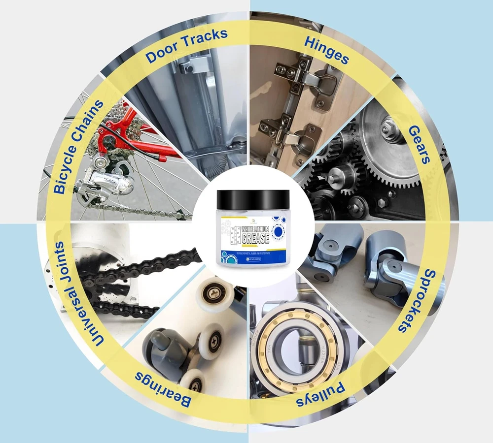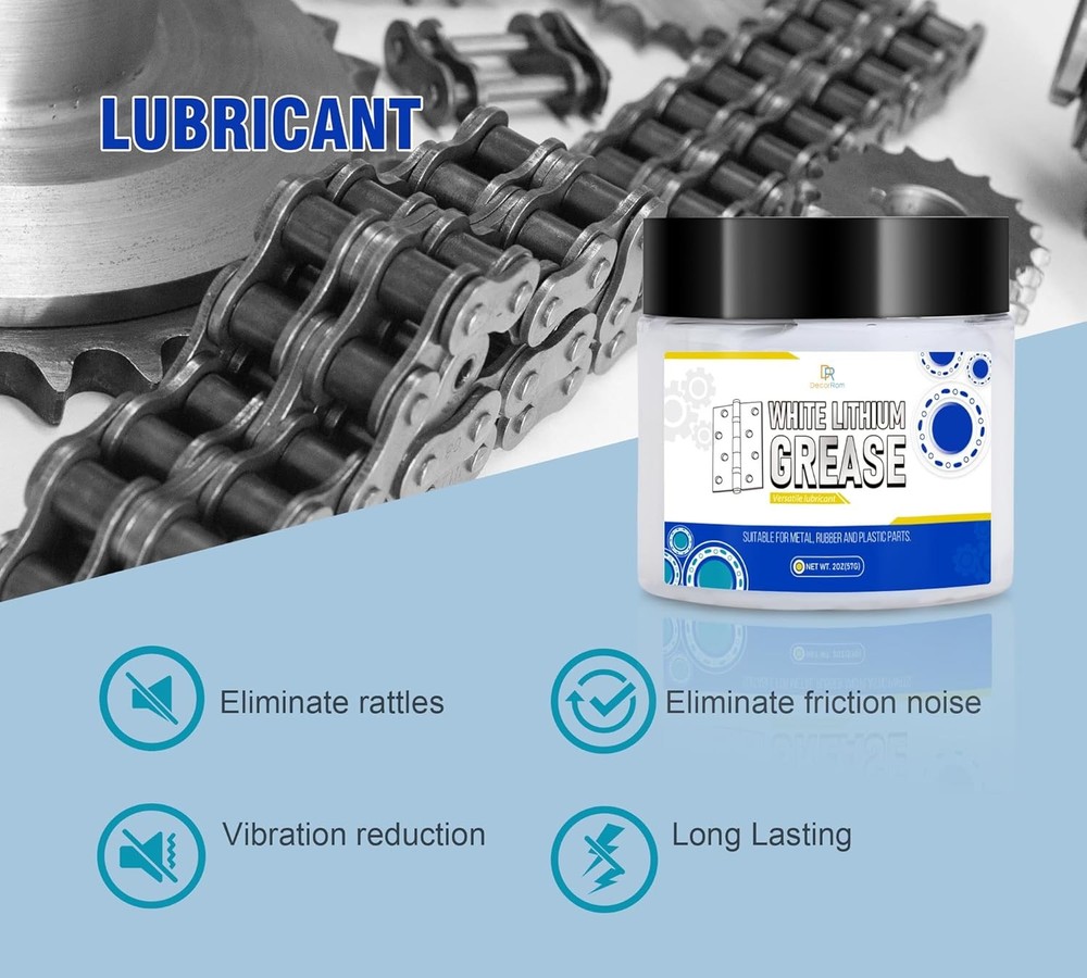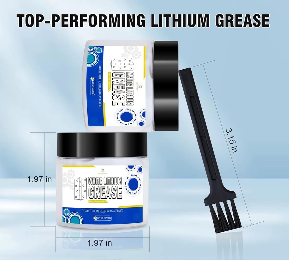 Free eBay listing template designed by dewiso.com White Lithium Grease 4oz - Multi-Purpose High Temp Lithium Lubricant for Automotive, Marine, Industrial Use - Multi-Purpose Gear Lubricant for Bearings, Chains, Gears - Dielectric Grease with Brush FREE AND FAST SHIPPING! About this item Versatile Multi-Purpose Lubricant: Our 114g White Lithium Grease serves as a high-performance multi-purpose lubricant suitable for marine, automotive, and industrial applications. It effectively lubricates bearings, gears, and hinges, making it the perfect choice for various mechanical needs. High Temperature & Water-Resistant: This high-temperature grease is designed to withstand extreme conditions, ensuring long-lasting performance even in challenging environments. Its water-resistant properties make it ideal for marine grease applications, protecting against rust and corrosion. Easy Application with Brush: The included brush applicator allows for precise and mess-free application, making it easy to apply the grease exactly where it’s needed, whether it’s for motorcycle chain lube, bike grease, or industrial machinery. Comprehensive Protection: Our formula not only works as bearing grease, but also functions as a dielectric grease, making it perfect for electrical connections and ensuring they remain corrosion-free. It's also effective as a contact cleaner, keeping your equipment in optimal working condition. Long-Lasting Performance: This long-lasting grease provides superior lubrication for all your mechanical needs. Whether you’re maintaining your bike, automotive parts, or industrial equipment, trust our white grease for optimal performance and reliability. Product We offer a 30-Day Return Policy on items which you are not completely satisfied with. You have the option for a full-refund or an exchange of the item. No returns are available on items shipped outside of the US . Shipping We offer Free Shipping to the US and ship within 2 business days of payment, usually sooner. We use UPS express shipping. That's why your products are usually delivered within 3 days . Contact We try our very best to make sure every customer is completely satisfied. If there's a problem , message us! We're happy to help. 24/7 live chat available.