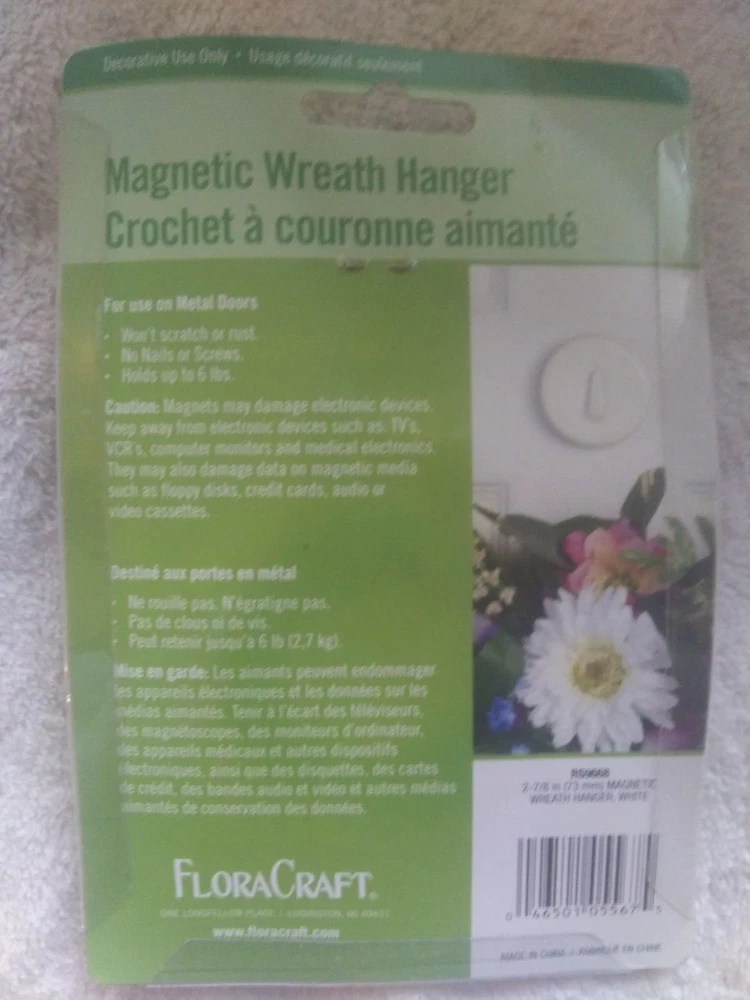 White Magnetic 2 7/8" Wreath Hanger for Metal Doors Holds Up To 6 Lbs Brand New No one here smokes but a couple of the cats are pretty heavy drinkers. Payment is due within 3 days. If you need more time or are bidding on multiple items please message me. I package well and ship quickly. I happily combine shipping on multiple purchases within the same week.