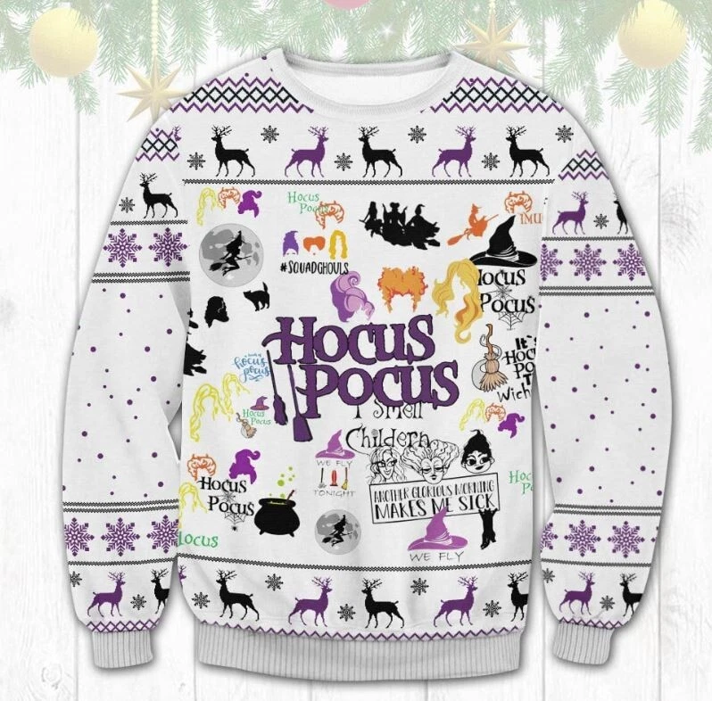 White Make Me Sick Hocus Pocus Ugly Christmas Sweater