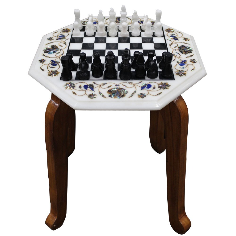 Welcome To Stone-Craft-Creations Shop Description Very unique Art by Indian Artist ,Coffee/Side Table top Used Material: Marble & Multi Semi Precious Gemstones Inlaid Size: 13"x13" inch Chess Pieces Size: 1.5" Inches tall Color: White Shape: Octagon Pattern: Handmade Room: Bedroom, Dining Room, Hallway, Home Office/Study, Kid’s Bedroom, Kitchen, Laundry/Utility Room, Living Room,Patio, Playroom Packaging: Wood & Foam Export Packing Shipping: Air Can be customize ,Please message your desired size Process of Making Marble Inlay 1. We are inlaying semiprecious stones in three different colors of marble White Marble,Black Marble & green marble. 2. The Marble used to inlay the semiprecious stone comes from city of Makrana, Rajasthan India. 3. First we cut the marble in different shape example Round,Octagonal,rectangle,oval & square shape. 4. After cutting the marble we paint the surface of marble with Hina(red Color) so we can sketch the geometry on the surface of Marble. 5. With the Help Of emery wheel we cut,polish & shape the semiprecious in different forms of flowers,buds,leafs & stems all the cutting of the semiprecious stones are manually cut by the artisans. 6. After cutting the semiprecious stones we assemble them to complete the motif & then the semiprecious stones are placed on the surface of marble so we can trace them on the surface of marble to make the exact size of the cavities once the stones are traced we remove the stones from the surface of marble & then manually we chisels the marble with the diamond chisels & tungsten carbide chisels once the cavities are completed we place the semiprecious stone in the cavities to check the depth of the stones. 7. When we are fully sure that the stone fits well in the cavities we use special kind glue to fix the semiprecious stones into the marble. 8. After completing the inlays into the marble we first rub the surface of marble with sandstone & then we polish the surface of marble with sandpaper which brings the natural shine on the surface of marble & to the semiprecious stone & we use wax polish to make the surface shiny. 9. Most interesting expect of this pietre dure( marble inlay with hard stone) all the designs are made by the artisans are purely an imagination of artist once made they cannot make another one exactly the same it will look similar but will not be the same. 10. This beautiful art is a dying art of Agra,India the artisans those make this beautiful art are the descendants of those families who built the Tajmahal in 17 century Tajmahal is a monument of love & you can easily see the artwork done with the same technique on the walls of the Tajmahal. 11. I Invite you to come to Agra,India & visit the beautiful Tajmahal & you will surely be impressed & we request you give us a chance to show you the true handmade art of Agra by our artisans. 12. When you are purchasing this beautiful handmade Marble inlay art you will always be happy because all the pcs made by our artisans with love,hope & happiness. 13. You will always be enjoying the beautiful handmade marble inlay artwork secondly you will be supporting the local artisans of Agra,India to keep this beautiful dying art Alive. 14. All the purchase benefits the artisans & the buyer as there is no middle men in selling & buying. Inspiration/Story Behind This Product 1. This beautiful inlay art is a dying art of Agra,India the artisans those make this beautiful art are the descendants of those families who built the Tajmahal in 17 century Tajmahal is a monument of love & and one of the seven wonders in the world you can easily see the artwork done with the same technique on the walls of the Tajmahal. Note 1.The marble inlay table is made in Agra, India. 2.The marble inlay table will be delivered by FedEx or DHL free of cost door to door. 3.If there is any local tax,custom duties or Vat will be paid by the buyer at the destination. 4.The parcel is dispatch with proper packing & fully insured covering all kind of risk. 5.This marble table illuminates if the light arrangement is made under the plate. 6.It is an art piece which will be a beauty & the conversation pieces at home. 7.If You Are Looking Something Customize, Let Us Know We Will Make For You As Per Your Design, Size & Shape. Thank you very much for admiring beautiful handmade marble inlay art. Please recommend your friends & family members to visit our ebay store this art is Dying art of Agra & we need your participation to keep this dying art alive. Thanking you in anticipation for your great support. If you are in Agra please email us we love to show you the process of marble inlay work at our premises