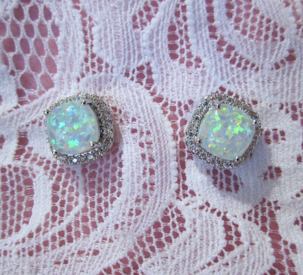 DETAILS **NOTE** Pictures do not do these justice...they are gorgeous!!! My pictures did not turn out well but I assure you these are amazing earrings! This listing is for this beautiful pair of silver & white Opal earrings. They measure approx. 10mm (3/8 inch) in diameter. The opal stone is framed with clear cubic zirconias. These are absolutely stunning and high in quality!! You will NOT be disappointed in these! Please ask any questions that you may have! FEEDBACK POLICY DUE TO A LARGE NUMBER OF BUYERS THAT NEVER RETURN FEEDBACK...I WILL ONLY GIVE IT AFTER THE BUYER DOES. WHEN THE BUYER RECEIVES THEIR ITEM AND LEAVES ME POSITIVE FEEDBACK, I PROMISE TO RETURN THE FEEDBACK TO THEM. SOMETIMES IT TAKES ME A FEW DAYS BUT I WILL GET IT TO YOU!! IF THE BUYER IS NOT HAPPY WITH SOMETHING I ASK THEM TO PLEASE CONTACT ME BEFORE LEAVING FEEDBACK AND GIVE ME THE FAIR CHANCE TO MAKE THINGS RIGHT!! I HOPE THAT MY BUYERS WILL UNDERSTAND AND I THANK YOU!! QUESTIONS Ask any question that you may have. If you are not happy with this item when you receive it.... please contact us instead of leaving a negative feedback. We are always willing to work anything out. Our customers come first and we want them to be happy. We always promise excellent customer service. A happy customer comes back!! We stand 100% behind our products and 100% guarantee all of them!! PAYMENT DETAILS USA and OUTSIDE USA: We accept PAYPAL payments. We do combine shipping on multiple items IF all items are paid within one payment. PLEASE WAIT FOR COMBINED SHIPPING INVOICE!! If you cannot pay with Paypal immediate, please let us know right away. This will keep us from bothering you with tons of invoices because we will know when to expect your payment!! Items MUST be paid for within 4 days. If not, We will relist the item and file a Non-Paying Bidder complaint. We truly hope that all transactions can be smooth and pleasant!! PLEASE understand that shipping is more than just stamps or postage. We do combine shipping on multiple items IF all items are paid within one payment. PLEASE WAIT FOR COMBINED SHIPPING INVOICE!! I try and ship items out within 24-48 hours after payment is received. I am very careful to package items extremely well which requires alot of high quality packing materials. Please also understand that no matter how fast I ship...the postal service is out of our control. Thank you! FOR RETURNS If you feel that you are not happy with an item, please CONTACT ME before leaving feedback. If the item is broken...I require return and will refund your payment in full when the item gets back to me. If you just dont want the item and choose a REFUND please understand that I cannot issue it until I have the item back in my home and it is in the EXACT shape as when it left. You will need to return the item at your own expense and refunds do not include shipping unless the item is broken or not as described. This is the only way that I can recover some of my costs that I would otherwise lose. THANK YOU!!