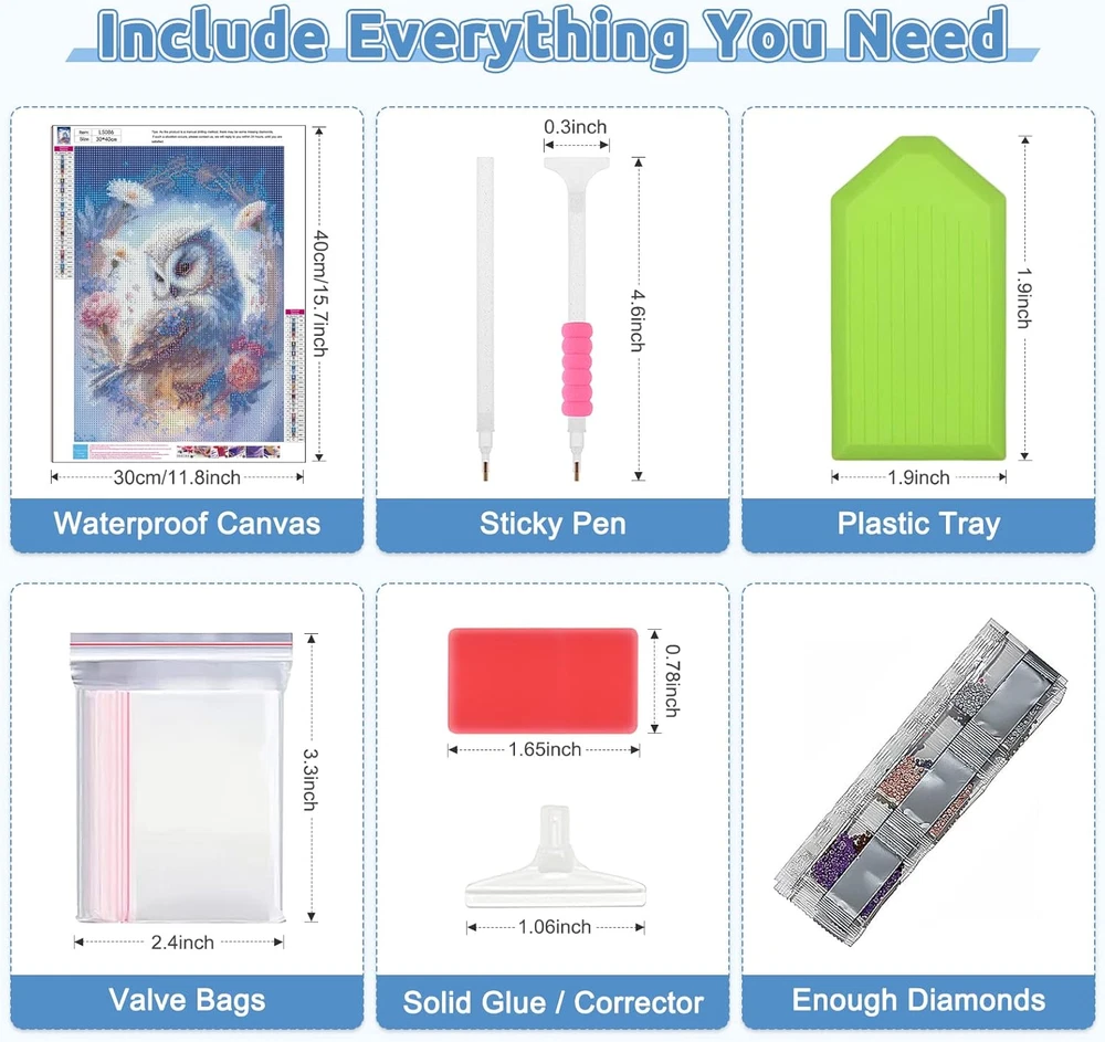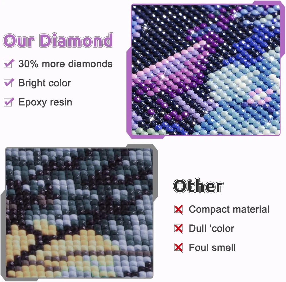 Diamond Painting Kit : The edges of the canvas have corresponding numbers and colors, and the combination of numbers and letters on the canvas are arranged with clear symbols, making it easier for you to read and easier to make, even for beginners. Exquisite Diamonds: Each diamond has strong three-dimensional effect, no odor, rich colors and will not fade. Each color has an extra 30% of diamonds, so you can use it without any worries. Interesting Painting: Unfinished diamond art can be given to friends, finished diamond art can be used as home and backdrop decorations for family, friends, colleagues. It can be kept for a long time. Enjoy Fun: It can improve hands-on skills, color discrimination, and also let adults experience a sense of accomplishment and boost self-confidence. Diamond Painting: Canvas has strong adhesion and diamonds do not fall off easily. If you have any questions about the product, we will solve the problem for you within 24 hours. Product Description EOBROMD 5D DIAMOND ART PAINTING KITS DIY Diamond Art Painting is a popular activity during family and friends. DIY diamond art painting can improve hands-on ability, cultivate self-discipline, exercise concentration, improve their understanding of color and aesthetics; For adults, doing diamond art painting can reduce stress, help emotional adjustment, enhance self-confidence and perseverance, and finally experience proud and successful; For elderly, doing diamond art can motivate their brain and mind. ENOUGH DIAMONDS We added an additional 30% of diamonds to prevent you from accidentally knocking over or losing them during use, resulting in insufficient diamonds. In addition, we also provide spare plastic bags, you can put the unfinished diamonds in and use them next time. Package includes 1 x Canvas 1 x Plastic Tray 1 x diamond art clay 2 x Diamond Sticky Pen 1 x Replaceable Correction Pen 5 x Ziplock Bag 1 Set of Diamonds Great as a gift Stress relief project after work Good decorations for home DIAMOND ART KITS Why Choose Us 1. We offer extra 30% diamonds, all diamond art painting kits are checked and weighed when they leave factory. If there is lack of diamonds or damage, please let us know. 2. Each diamond art painting kits for adults contains a set of painting tools, no need to buy any other kit. 3. 5D diamond art painting kit use HD printing oil canvas, which is non-toxic, waterproof and not easy to fold, making your room more vivid and shining under the light. The frame is not included. The 5d diamond art kit is just a rolled canvas. Please frame it by magnetic or wooden and hang it Enjoy the experience and make memories GOOD GIFTS Diamond art are handmade crafts. This is a gift full of creativity and expression. It is an exquisite gift for family and friends on birthdays and holidays, also is a great choice for cross stitch and embroidery craft lovers. PREMIUM QUALITY CANVAS The diamond art canvas fabric is soft and wrinkle-resistant, waterproof and moisture-proof, and uniform in texture. The plastic protective film keeps the canvas sticky and makes the diamonds stronger. Adjust emotion and improve concentration Strengthen the interaction
