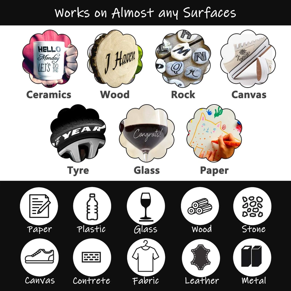 Store New Arrivals Add to Favorite View Feedback Contact Fast deliveries to the customer's home Quality customer service John Make the customers happy! White Paint Marker Paint Pens - 2 Pack Acrylic Permanent Marker, 0.7Mm Extra Fine Tip Paint Pen for Art Projects, Drawing, Rock Painting, Ceramic, Glass, Wood, Plastic, Metal, Canvas DIY Crafts Description PREMIUM QUALITY: The white permanent paint marker is acid free. It is chemically stable, waterproof and wear resistant. It’s a great tool for art projects, DIY crafts, greeting cards, poster making, painting, highlighting and homework assignments SMOOTH & PRECISE WRITING: With 0.7 mm pen tips, the white paint pen is specially designed with a wear-resistant and pressure-resistant chisel tip, that allows for precise control and helps to achieve fluid and smooth clear writing. The pigment ink is waterproof, chemically stable and quick-drying WORKS ON ALMOST ANY SURFACES: The paint pens works on almost any surfaces such as rock, canvas, wood, metal, glass, ceramic, plastic, tire, etc. They are the best tool for creativities SAFE & NON-TOXIC: The pigment ink is water based which is odorless, non-toxic, lightfast and water-resistant. It is 100% safe for students, teenagers & adults OUTSTANDING AFTER-SALES SERVICE: Every paint marker is independently tested and selected to ensure the performance you expect. Enjoy peace of mind with our 24/7 customer support. We are committed to ensuring your complete satisfaction with prompt assistance for any concerns Product Description 1 0.7mm FINE TIP 2 NON-TOXIC 3 WATERPROOF 1 WOOD 2 FABRIC 3 GLASS 4 PHONE CASE 5 PAPER EASY TO USE Shake the pen well before use. Press the nib upward for 3-4 seconds to release the air inside pen. Press the tip down several times until the ink flows out. Ready to draw. TFIVE PAINT PENS Add to Cart Add to Cart Add to Cart Add to Cart Add to Cart Add to Cart Customer Reviews 4.4 out of 5 stars 2,763 4.4 out of 5 stars 40 4.4 out of 5 stars 31 4.4 out of 5 stars 731 4.5 out of 5 stars 207 4.4 out of 5 stars 1,448 4.5 out of 5 stars 5,085 Price $9.99 $ 9 . 99 $9.96 $ 9 . 96 $13.96 $ 13 . 96 $6.99 $ 6 . 99 $6.99 $ 6 . 99 $6.99 $ 6 . 99 $13.99 $ 13 . 99 Pack Size 6 pack Single color 5 color 12 color 2 pack Single color 2 pack Single color 2 pack Single color 12 color Ink Property Acrylic Water based Acrylic Water based Acrylic Water based Acrylic Water based Acrylic Water based Oil based Oil based Tip Size Extra-fine Extra-fine Brush Extra-fine Medium Medium Medium Writing Width 0.7-1mm 0.7-1mm 0.5-5 mm 0.7-1mm 0.7-6mm 2-3 mm 2-3 mm EN 71/ASTM Certified ✔ ✔ ✔ ✔ ✔ ✔ ✔ Ink Base Water Number of Items 2 Pattern Solid Material Type Plastic Ink Color White Theme Crafts and Art Number of Pieces 2 Drill Point Extra Fine Additional Features Waterproof, Permanent, Extra Fine Tip, Non Toxic, Acrylic Water-based Point Type Extra Fine Hand Orientation Ambidextrous Water Resistance Level Waterproof Marker Type Paint Marker Surface Recommendation Wood, Glass, Plastic, Metal, Ceramic, Rock Target Audience All Ages Is Waterproof true Line Size 0.7 millimeters Color White Recommended Uses For Product Writing, Drawing, Coloring, Painting Style Name Chisel ABOUT US We offer the best prices around on high quality products. Our E-store includes media such as books, movies, music and games while offering electronics, toys, sporting apparel, clothing, tools, general home, garden items and more. SHIPPING We are always working hard to ensure your package arrives as soon as possible. Please understand that some factors like weather, high postal traffic, and the performance of shipping companies are outside of our control. We offer free shipping to the lower 48 states and ship within 2 business days of payment, usually sooner. We do not accept P.O. Boxes. Please provide a physical address. For shipping outside of the continental USA, we only use eBay's Global Shipping Program. The item is shipped to KY and then sent to the rest of the world. International customers are responsible for all duties and taxes. Continue to 'check out' to calculate costs for shipping the item to your country. Messages regarding eBay's Global Shipping Program MUST be directed at eBay EXCLUSIVELY. RETURNS We offer a 30-Day Return Policy on items in which you are not completely satisfied with. You have the option of a full-refund or an exchange of the item. No returns are available on items shipped outside of the USA PAYMENT We accept PayPal. CONTACT US This page content is yet to come Please ad us to your favorite seller and visit again later Thank You CUSTOMER SATISFACTION We try our very best to make sure every customer is completely satisfied. If there's a problem, message us! We're happy to help. WE ACCEPT