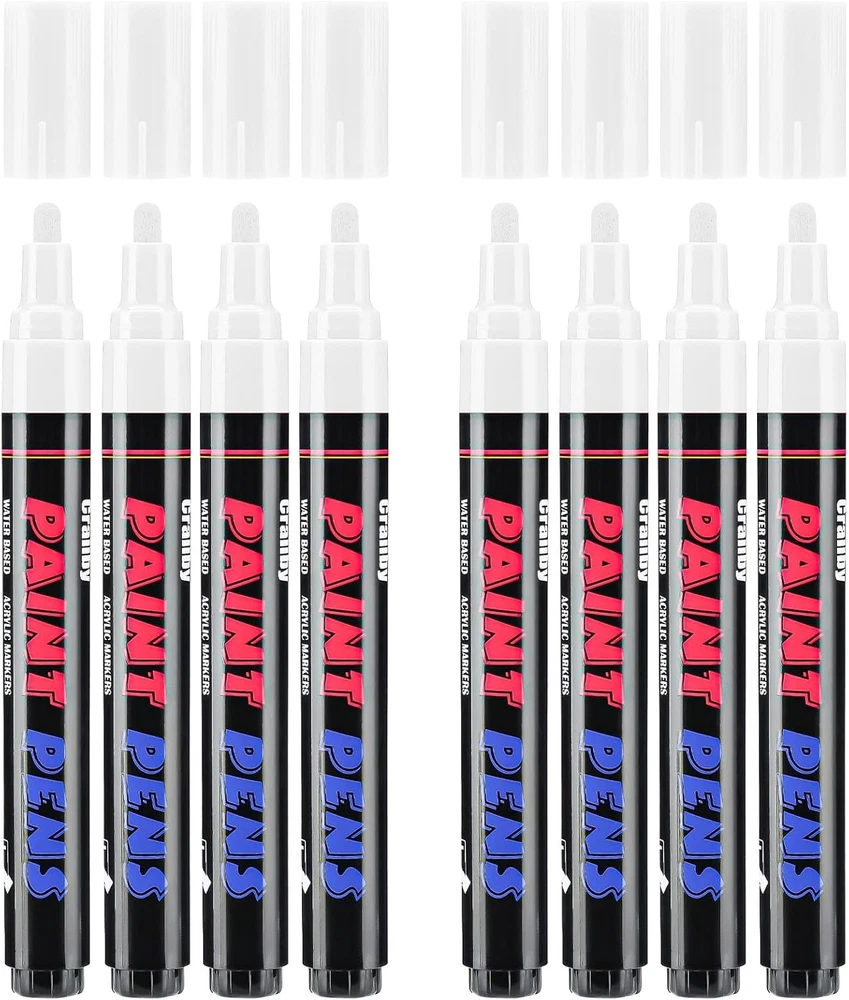 Store New Arrivals Add to Favorite View Feedback Contact Fast deliveries to the customer's home Quality customer service John Make the customers happy! White Paint Pens Paint Markers - 8 Pack Permanent Acrylic Quick Dry Waterproof Marker Pens for Rocks Wood Fabric Plastic Canvas Glass Mugs Metal Tire Stone Description Vibrant and Versatile Colors: Our Permanent Paint Marker Pens offer an extensive range of bright and vivid colors, ensuring your artistic creations truly pop and come to life. Whether you're working on rock painting, metal marking, wood engraving, or fabric art, our markers provide a stunning color palette to fuel your imagination. Effortless Precision with 2-3mm Medium Point: Achieve precise and detailed artwork effortlessly with the 2-3mm medium point tip. Whether you're a professional artist or a DIY enthusiast, you'll appreciate the ease of creating fine lines and intricate designs with our markers. Consistent Flow for Flawless Results: Say goodbye to uneven strokes and inconsistent lines. Our Permanent Paint Markers deliver a consistent and smooth ink flow, ensuring your artwork looks professional and polished every time. No more frustrating interruptions in your creative process! Durable and Waterproof: Protect your creations from the elements with our waterproof markers. Once dry, they resist water, ensuring your artwork remains vibrant and intact, even when exposed to rain or moisture. This feature is essential for outdoor projects like rock painting. Quick-Drying for Instant Gratification: Get your projects completed in record time with our quick-drying markers. Say farewell to waiting for paint to dry, as our markers dry rapidly, allowing you to move on to the next step or project without delay. This feature is perfect for crafters and artists who value efficiency. Product Description The video showcases the product in use. The video guides you through product setup. The video compares multiple products. The video shows the product being unpacked. Craiiby Paint Marker Pens Our Permanent Paint Marker Pens offer an extensive range of bright and vivid colors, ensuring your artistic creations truly pop and come to life. Whether you're working on rock painting, metal marking, wood engraving, or fabric art, our markers provide a stunning color palette to fuel your imagination. Item Weight 6.4 ounces Number of Items 8 Color White Line Size 0_5mm Material Type Aluminum Manufacturer Part Number BXB-08 Ink Color White Recommended Uses For Product Drawing, Painting, Writing, Coloring Point Type Medium Package Dimensions 5.83 x 5.08 x 0.67 inches ABOUT US We offer the best prices around on high quality products. Our E-store includes media such as books, movies, music and games while offering electronics, toys, sporting apparel, clothing, tools, general home, garden items and more. SHIPPING We are always working hard to ensure your package arrives as soon as possible. Please understand that some factors like weather, high postal traffic, and the performance of shipping companies are outside of our control. We offer free shipping to the lower 48 states and ship within 2 business days of payment, usually sooner. We do not accept P.O. Boxes. Please provide a physical address. For shipping outside of the continental USA, we only use eBay's Global Shipping Program. The item is shipped to KY and then sent to the rest of the world. International customers are responsible for all duties and taxes. Continue to 'check out' to calculate costs for shipping the item to your country. Messages regarding eBay's Global Shipping Program MUST be directed at eBay EXCLUSIVELY. RETURNS We offer a 30-Day Return Policy on items in which you are not completely satisfied with. You have the option of a full-refund or an exchange of the item. No returns are available on items shipped outside of the USA PAYMENT We accept PayPal. CONTACT US This page content is yet to come Please ad us to your favorite seller and visit again later Thank You CUSTOMER SATISFACTION We try our very best to make sure every customer is completely satisfied. If there's a problem, message us! We're happy to help. WE ACCEPT