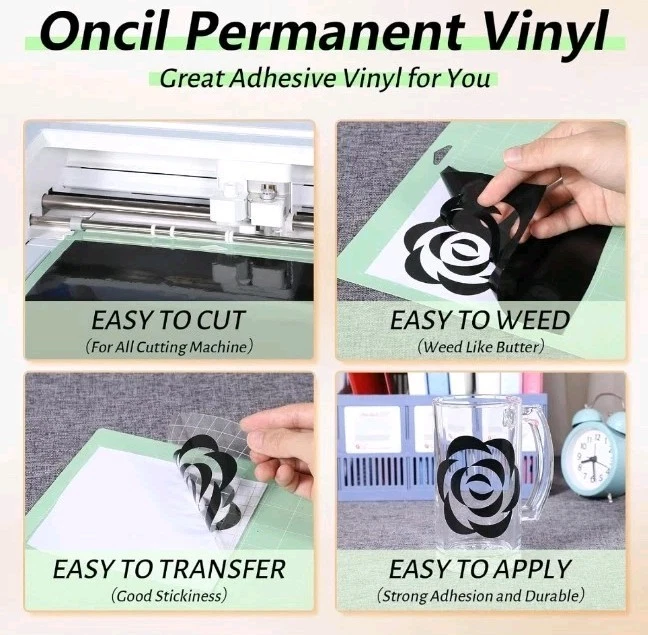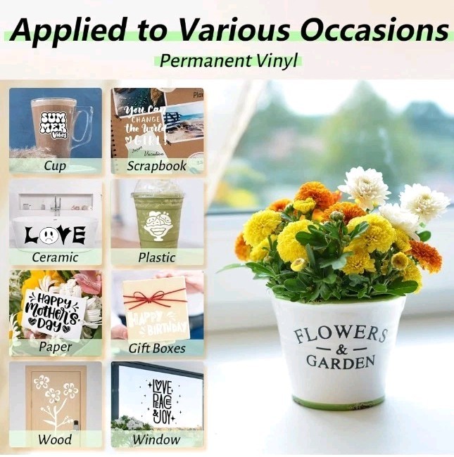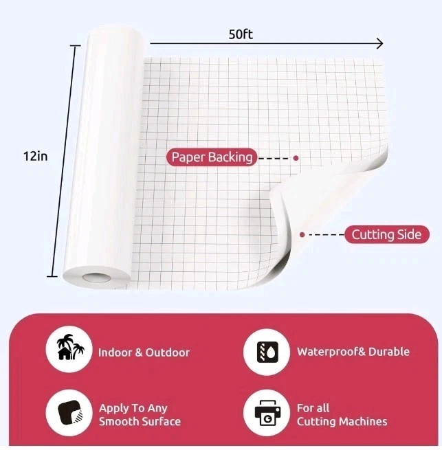 White Permanent Vinyl for Cricut Machine, 12" x 50ft White Adhesive Vinyl Roll for DIY Mug Decor for Wall Sticker, Car Decal, Scrapbooking, Card, Signs Party Decoration