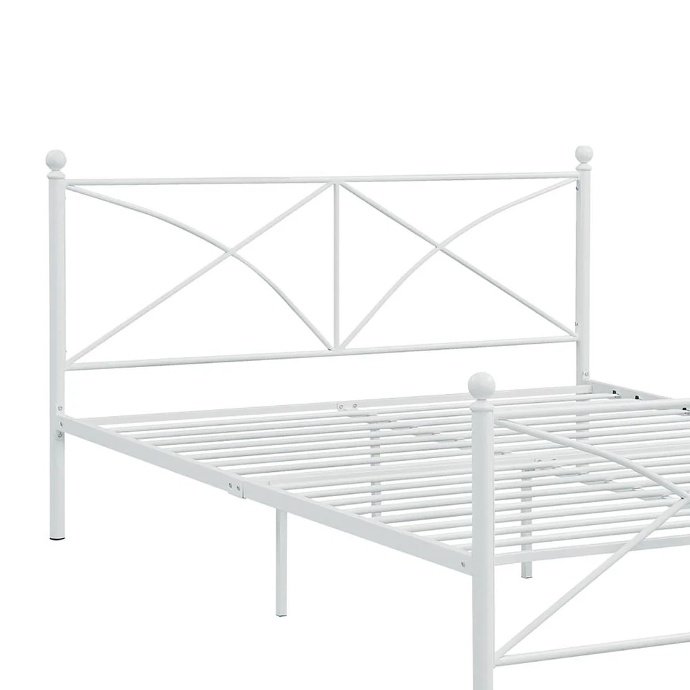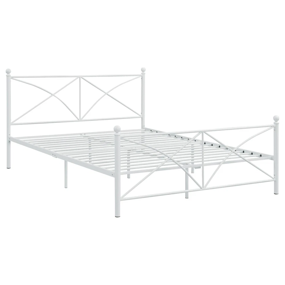 Brand Unbranded Item Length 63.78 Item Width 24.40 Item Height 4.70 Color White Frame Material Metal Type BED FRAME Compatible Mattress Size As described Diamond-ring-1 Simple life White Queen Platform Bed Crafted with durable metal, this bed frame boasts both durability and stylish aesthetics, elevating the visual appeal of any bedroom The headboard and footboard showcase a contemporary X-style pattern, adding a modern and fashionable touch to the bed's design Ideal for various bedroom types, including guest bedrooms and youth bedrooms, due to its adaptable style and visual appeal Equipped with straight legs, the bed frame offers stable support while maintaining a clean and modern look, suitable for transitional spaces Designed for convenience, assembly of this bed frame is straightforward and user-friendly, ensuring a hassle-free setup process Romance Copy Minimal with a traditional touch, this contemporary bed features a classic poster style silhouette with corner finials and a rectangular headboard and footboard with a curved cross-brace motif. Made of a heavy gauge steel tubing throughout, this bed is as sturdy and supportive as they come, offering a convenient elevated frame for underbed storage. Product Details Set includes: One (1) bed Dimensions 38.5 inches high x 63 inches wide x 84 inches long Finish Color White Materials Metal Tested static weight 800 lbs Item Specifics Brand Unbranded Item Length 63.78 Item Width 24.40 Item Height 4.70 Color White Frame Material Metal Type BED FRAME Compatible Mattress Size As described Payment Returns Diamond-ring-1 Simple life DESCRIPTION PAYMENT SHIPPING RETURN POLICY CONTACT US Shop Category Store Home Other Hot Item Delivery New List Item Help & Info Payment Policy Shipping Policy Return Policy FAQ About Us White Queen Platform Bed Crafted with durable metal, this bed frame boasts both durability and stylish aesthetics, elevating the visual appeal of any bedroom The headboard and footboard showcase a contemporary X-style pattern, adding a modern and fashionable touch to the bed's design Ideal for various bedroom types, including guest bedrooms and youth bedrooms, due to its adaptable style and visual appeal Equipped with straight legs, the bed frame offers stable support while maintaining a clean and modern look, suitable for transitional spaces Designed for convenience, assembly of this bed frame is straightforward and user-friendly, ensuring a hassle-free setup process Romance Copy Minimal with a traditional touch, this contemporary bed features a classic poster style silhouette with corner finials and a rectangular headboard and footboard with a curved cross-brace motif. Made of a heavy gauge steel tubing throughout, this bed is as sturdy and supportive as they come, offering a convenient elevated frame for underbed storage. Product Details Set includes: One (1) bed Dimensions 38.5 inches high x 63 inches wide x 84 inches long Finish Color White Materials Metal Tested static weight 800 lbs Item Specifics Brand : Unbranded Item Length : 63.78 Item Width : 24.40 Item Height : 4.70 Color : White Frame Material : Metal Type : BED FRAME Compatible Mattress Size : As described Payment Returns All rights reserved.